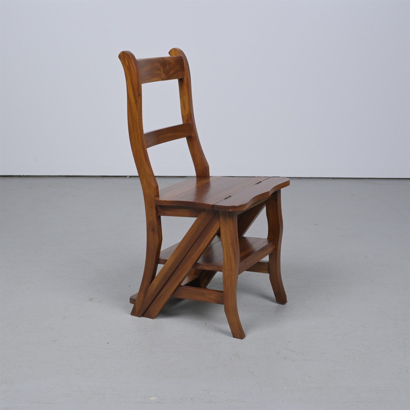 A MAHOGANY METAMORPHIC LIBRARY LADDER / STEP CHAIR (89CM H X 44CM W X 46CM D)