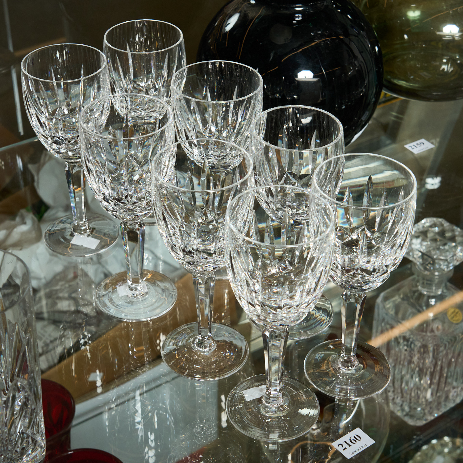 A SET OF EIGHT WATERFORD CRYSTAL KILDARE PATTERN WHITE WINE GLASSES H.16.5CM