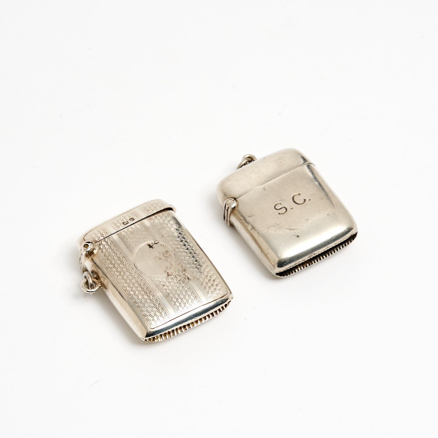 TWO ENGLISH HALLMARKED STERLING SILVER VESTA CASES L.4.5CM