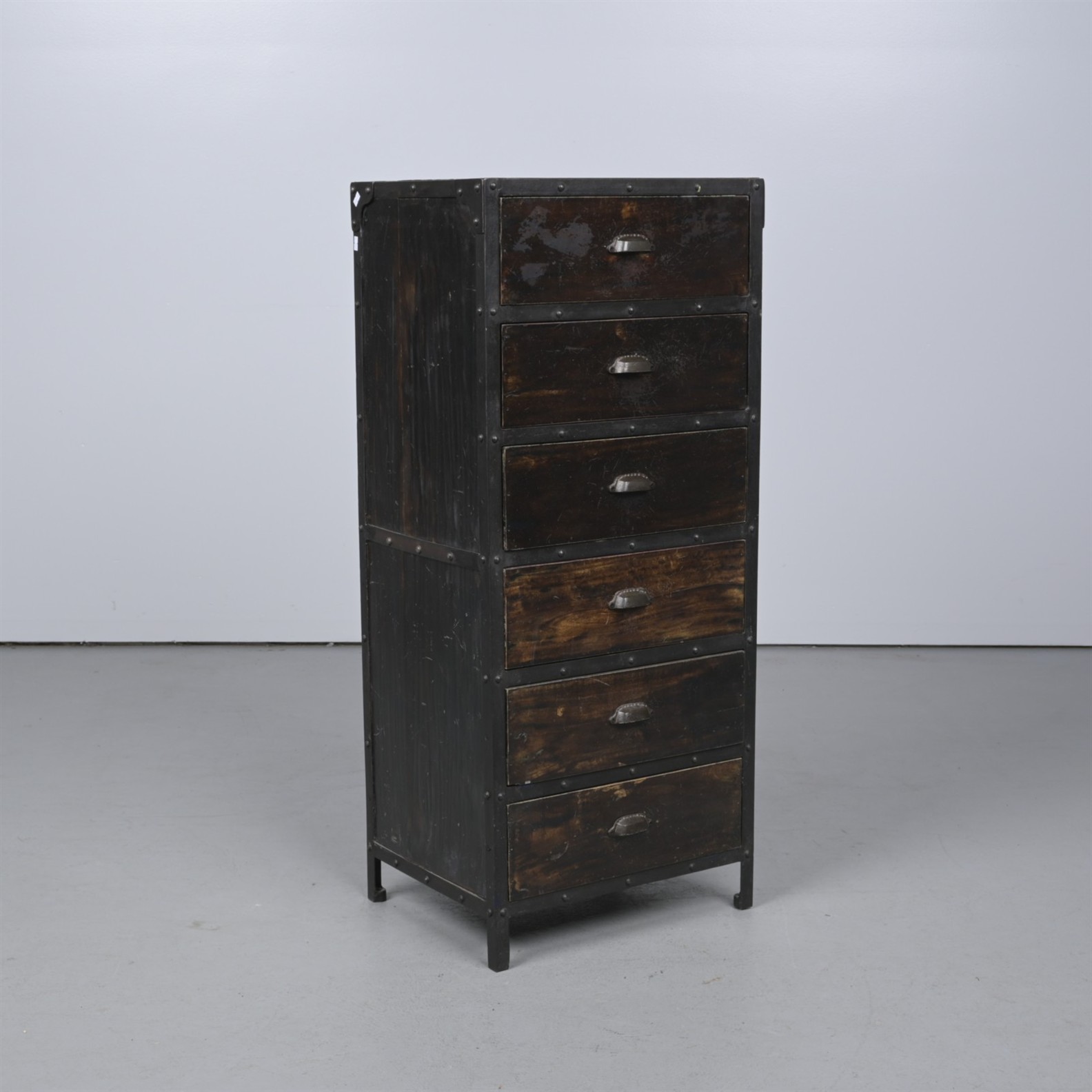 AN IINDUSTRIAL METAL CHEST OF DRAWERS (A/F) (118CM H X 50CM W X 40CM D) (THIS ITEM MUST BE REMOVED BY PROFESSIONAL CARRIERS OR CLIENTS. LEONARD JOEL STAFF CANNOT ASSIST WITH CARRYING OR DELIVERY OF THIS ITEM)