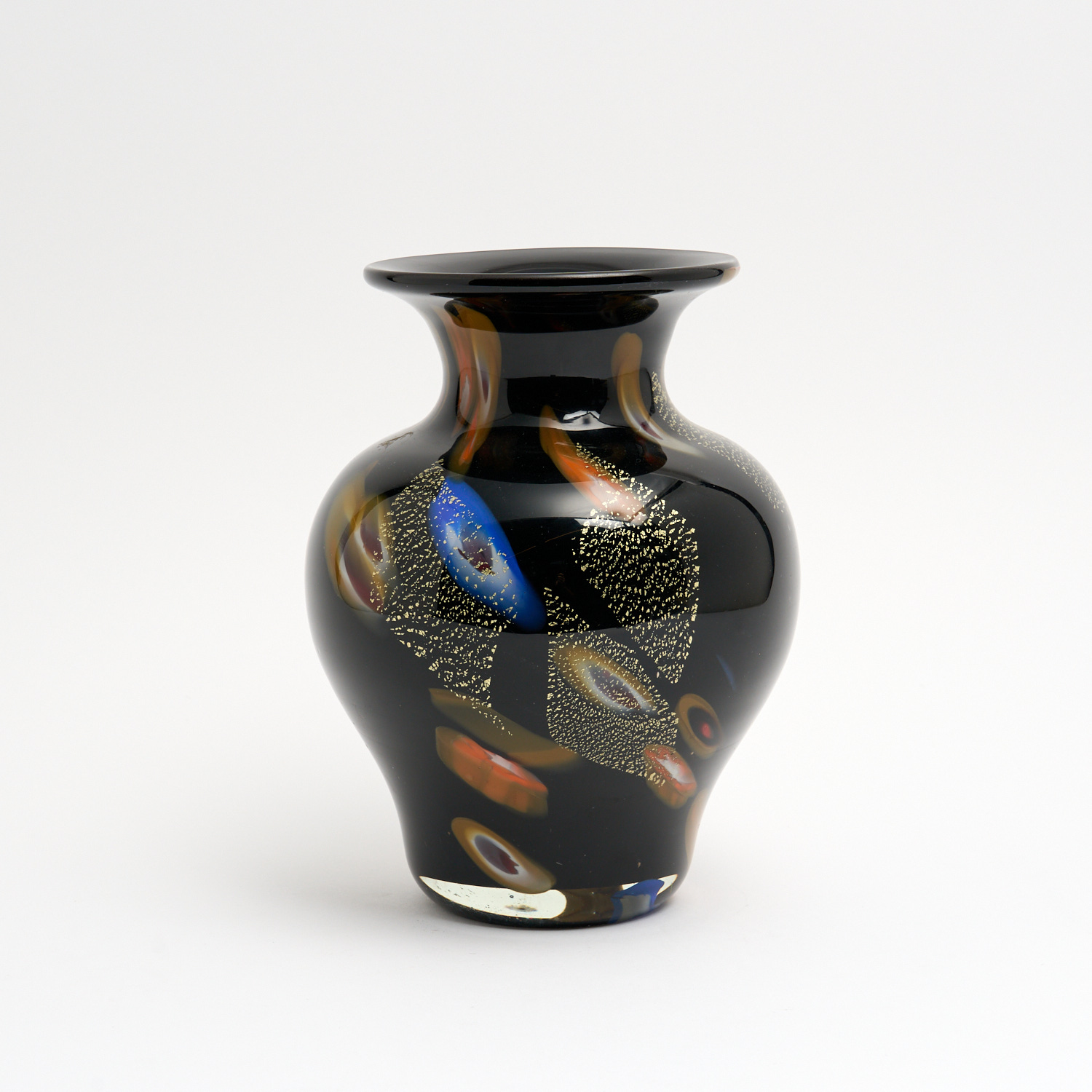 A MODERN JAPANESE ART GLASS VASE WITH GOLD FOIL INCLUSIONS H.26CM