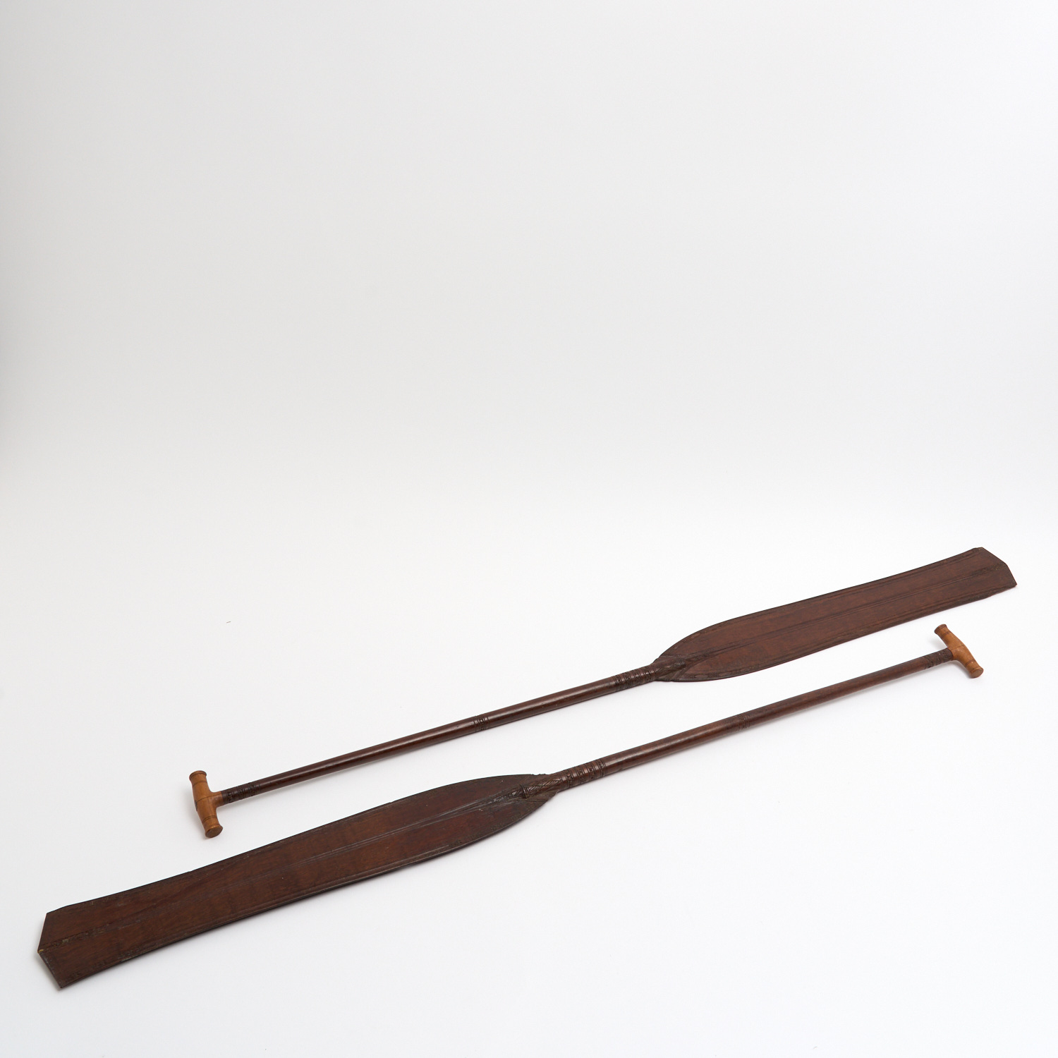 A PAIR OF CARVED TRIBAL PADDLES L.92CM