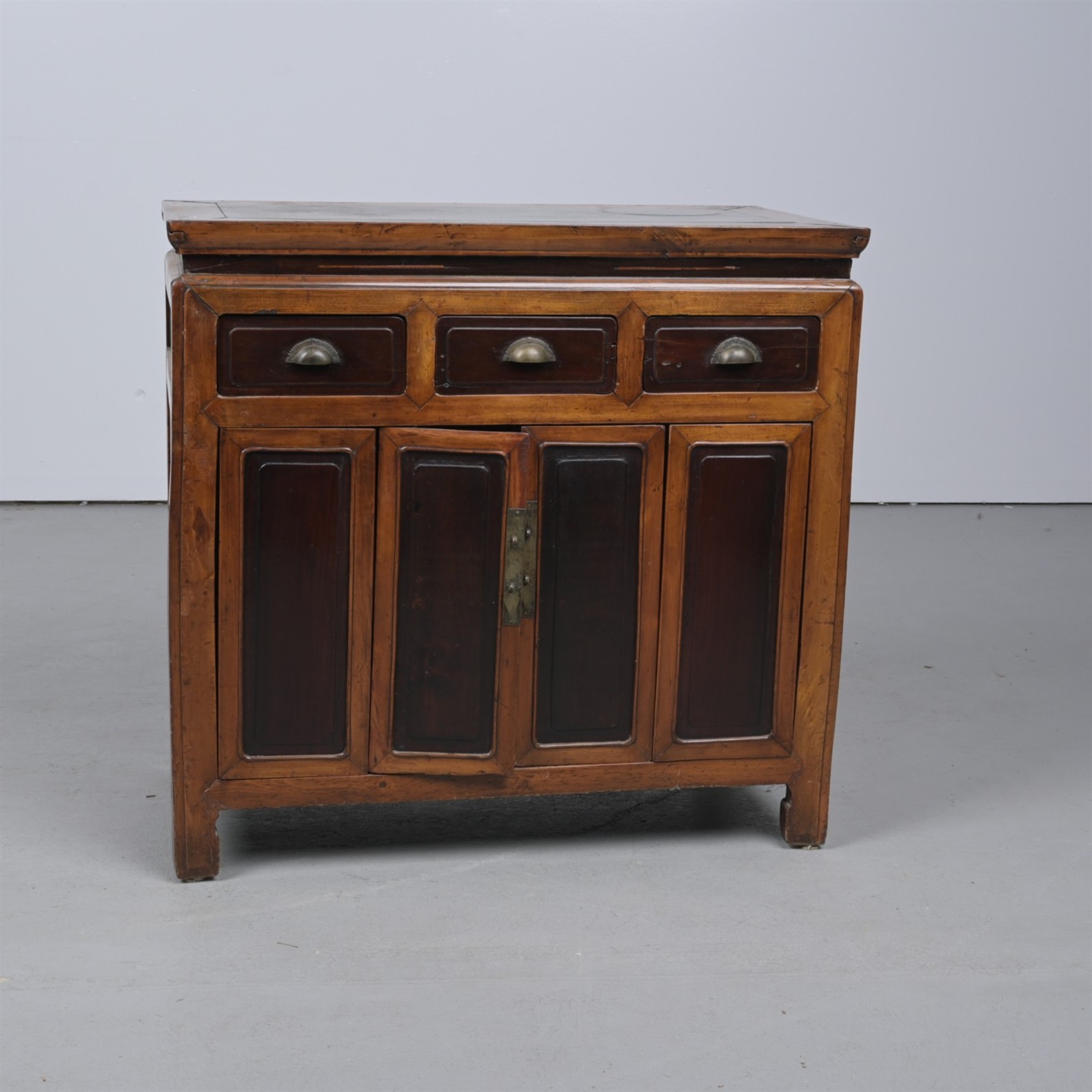 A CHINESE ELM SIDEBOARD (85CM H X 88CM W X 50CM D) (THIS ITEM MUST BE REMOVED BY PROFESSIONAL CARRIERS OR CLIENTS. LEONARD JOEL STAFF CANNOT ASSIST WITH CARRYING OR DELIVERY OF THIS ITEM)