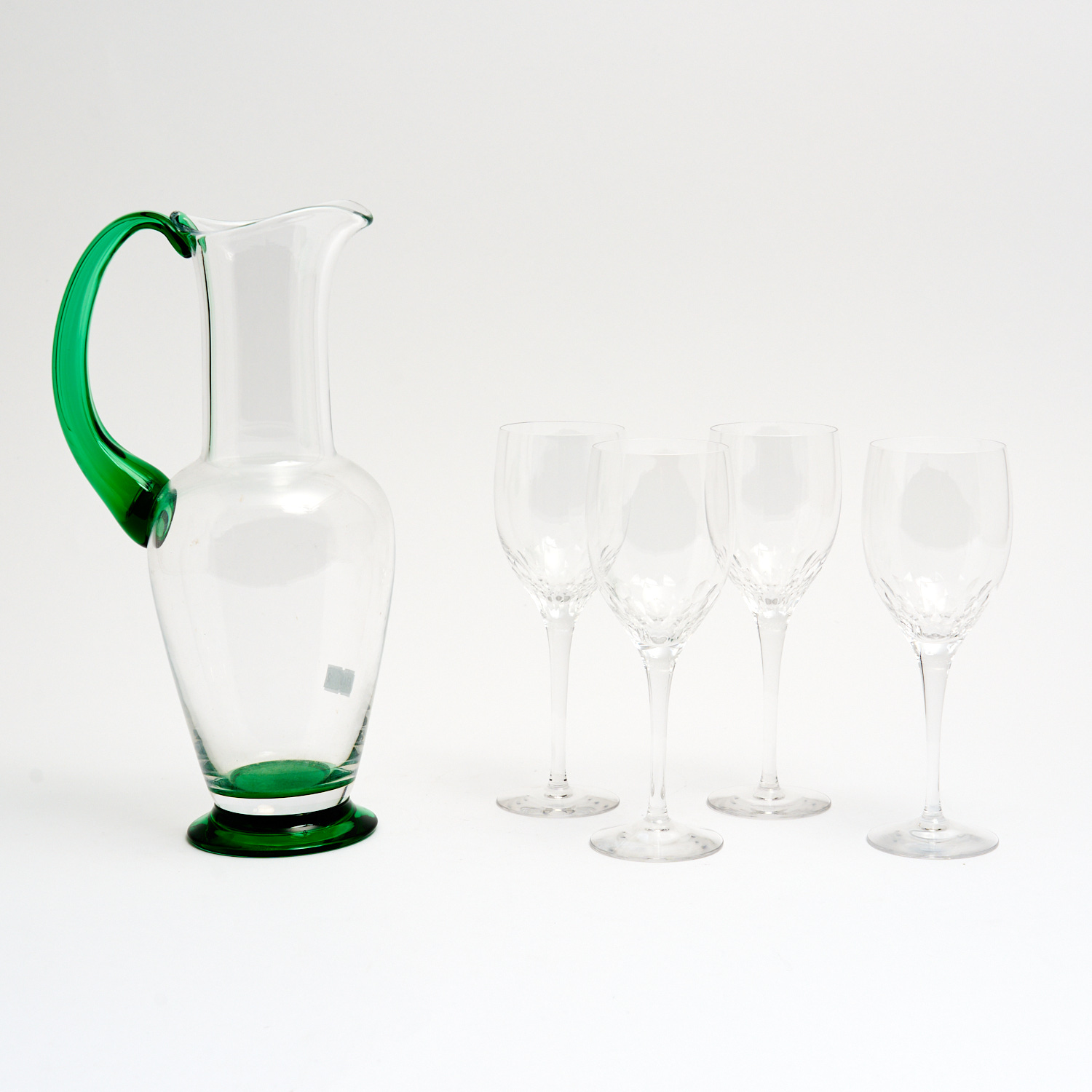 AN ORREFORS 'NOBLE' CARAFE BY GUNNAR CYRÉN WITH A SET OF 'PRELUDE' WINE GLASSES BY NILS LANDBERG, MADE IN SWEDEN
