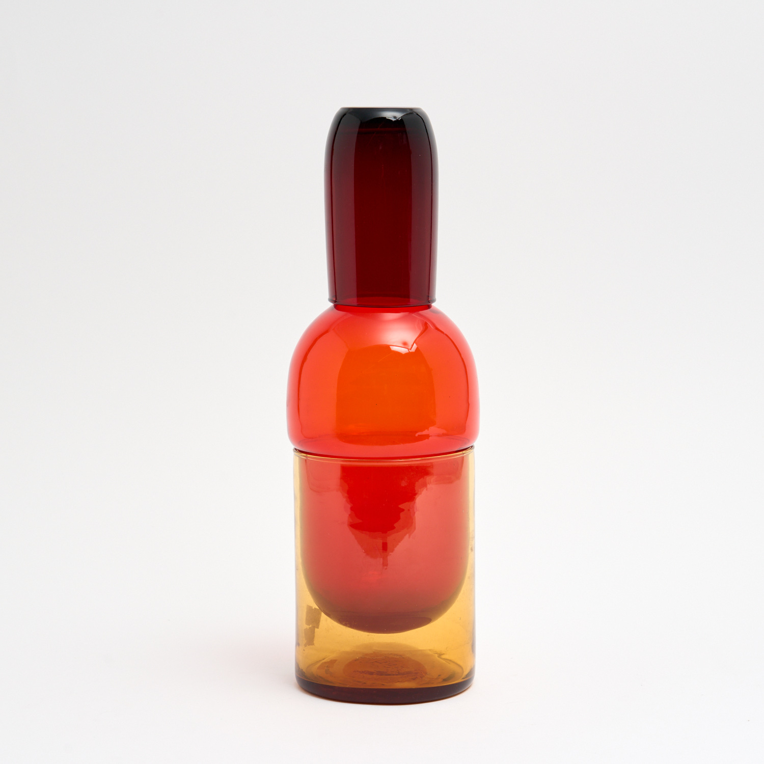 A MID CENTURY WATER CARAFE AND GLASS SET ATTRIBUTED TO TIMO SARPANEVA, (SIGNED T.S.) (A/F) H.34CM
