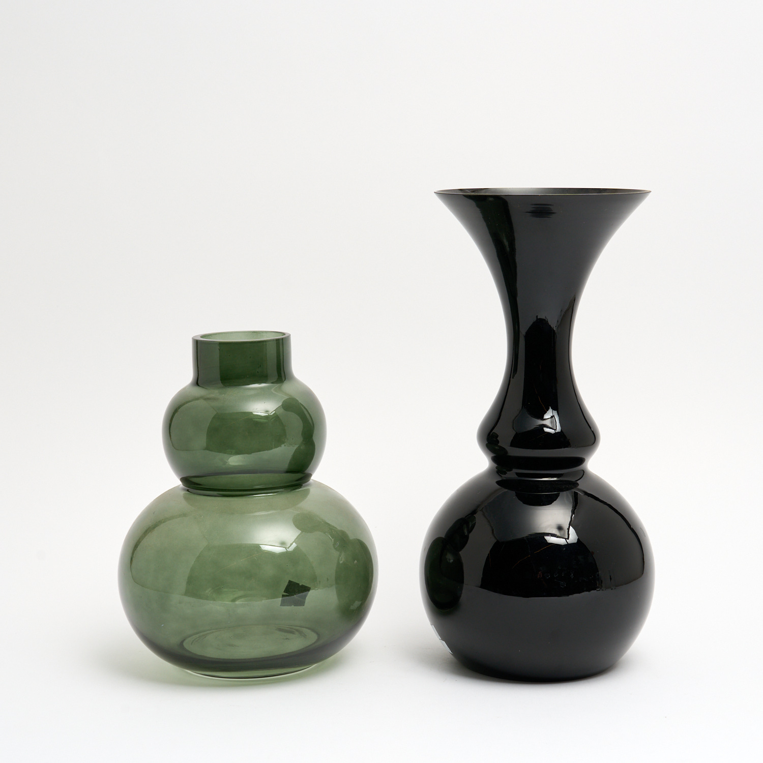 TWO LARGE VINTAGE GLASS VASES H.37CM (TALLEST)