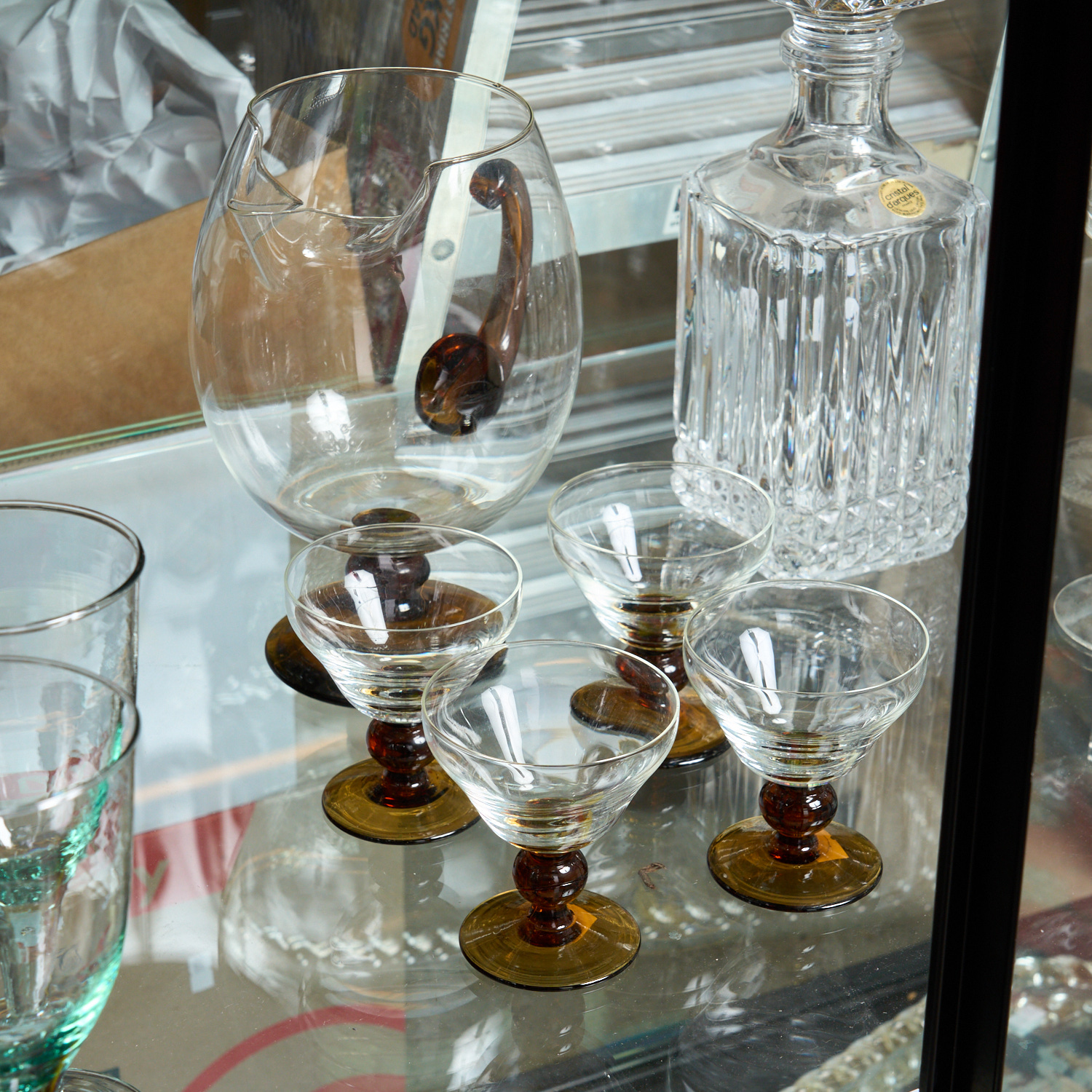 A 1930'S WATER GLASS SET WITH JUG AND FOUR GLASSES H.21.5CM (JUG)