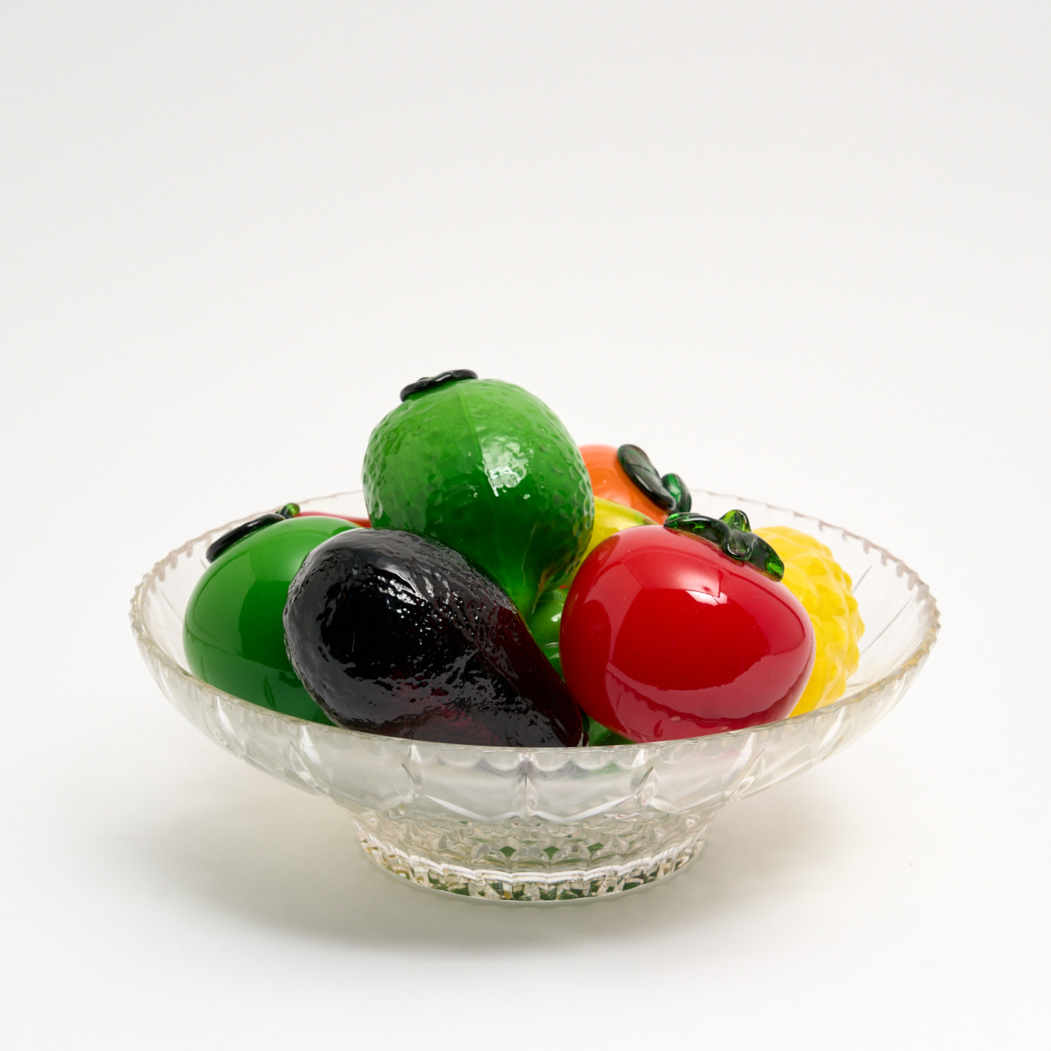 A COLLECTION OF ITALIAN GLASS FRUITS IN BOWL L.18CM (LARGEST)