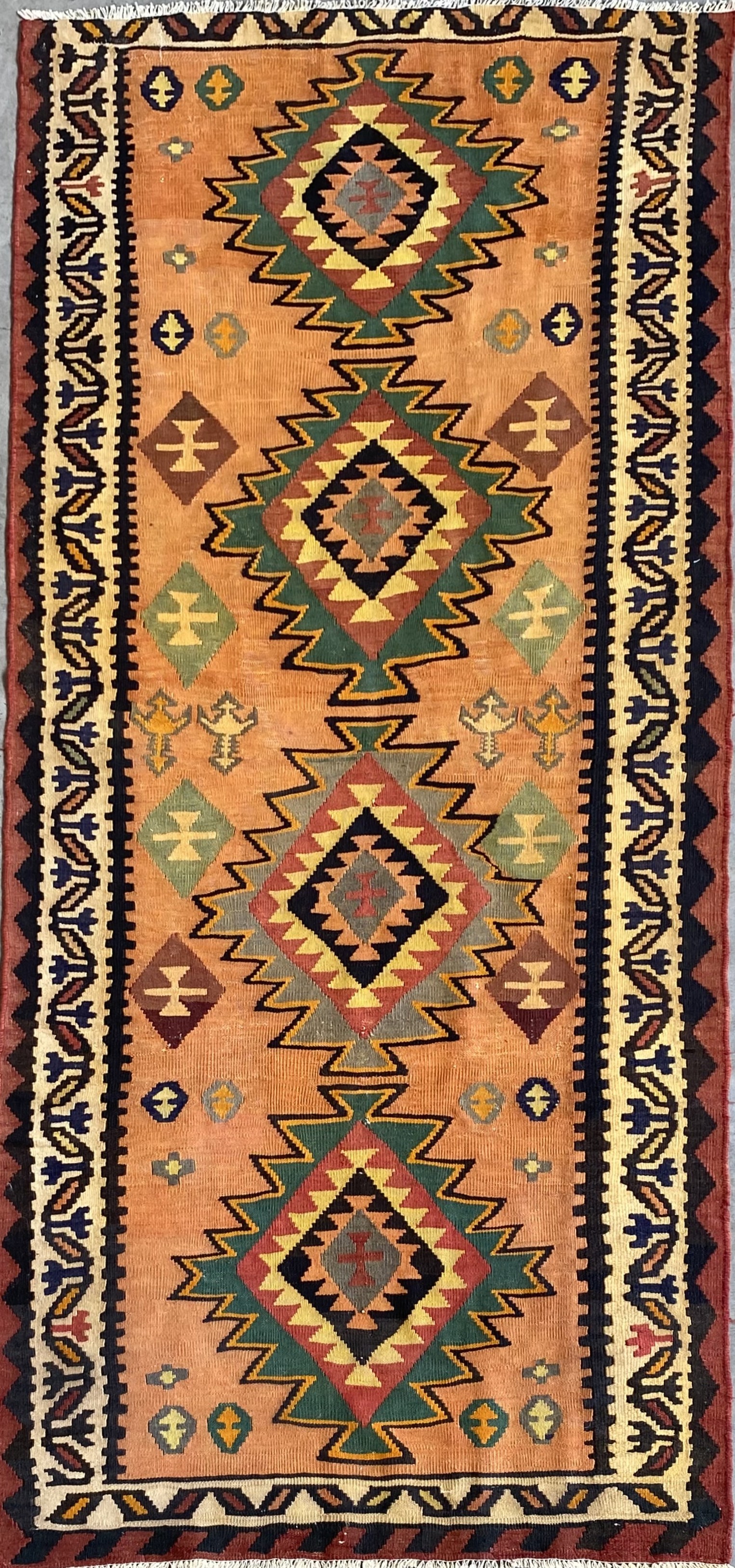 A TRIBAL PERSIAN NEYRIZ KILIM (300 X 135 CM)