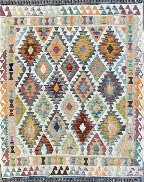 A NEW CAUCASIAN DESIGN AFGHAN KAZAK KILIM (194 X 159 CM)