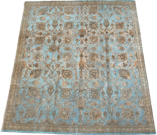 AN OVERDYED PERSIAN TABRIZ RUG (270 X 227 CM)