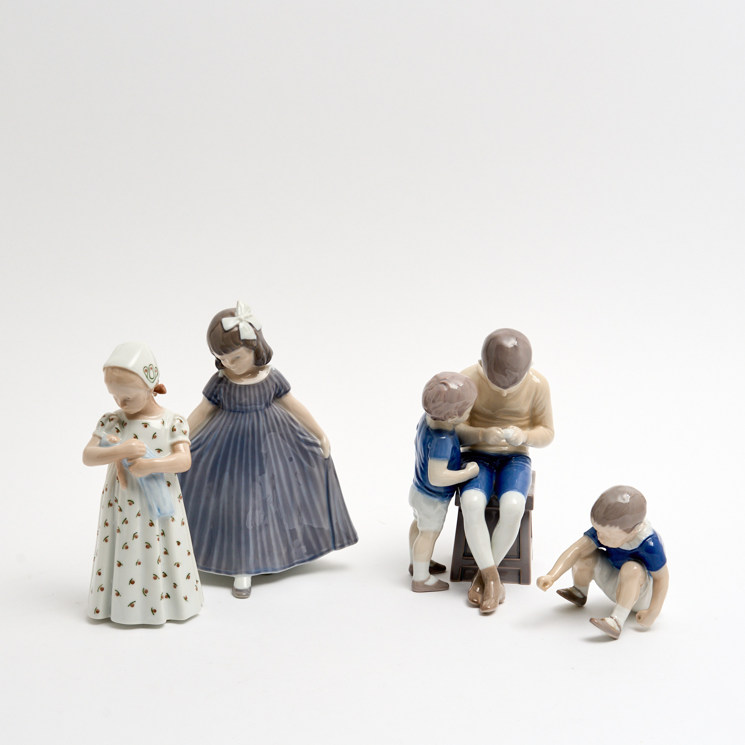A GROUP OF FOUR ROYAL COPENHAGEN CHILDREN FIGURINES AND FIGURAL GROUPS H.21CM (TALLEST)
