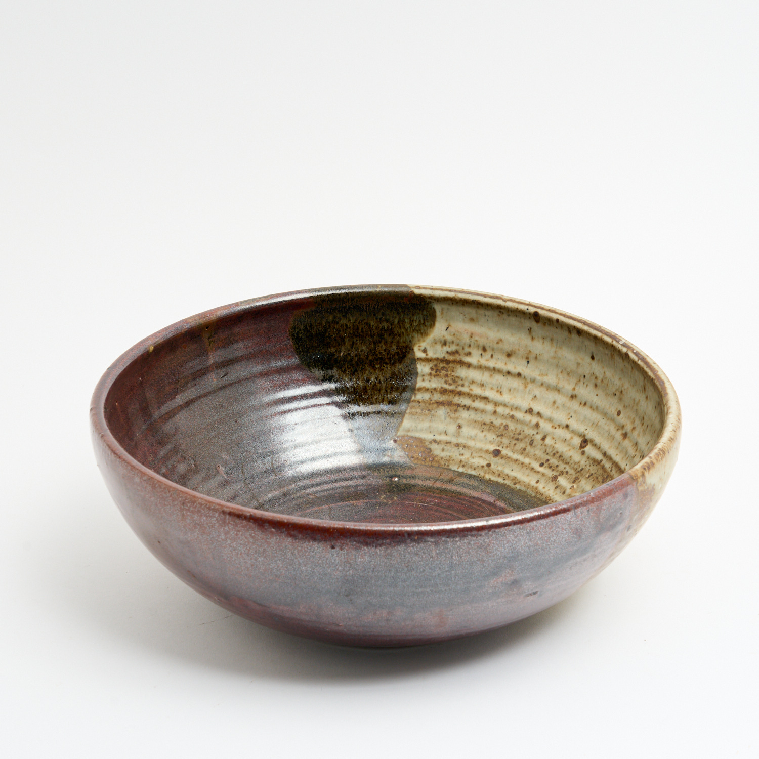 A CHRISTOPHER SANDERS STUDIO POTTERY BOWL, SIGNED AND DATED 1975 DIA.34CM