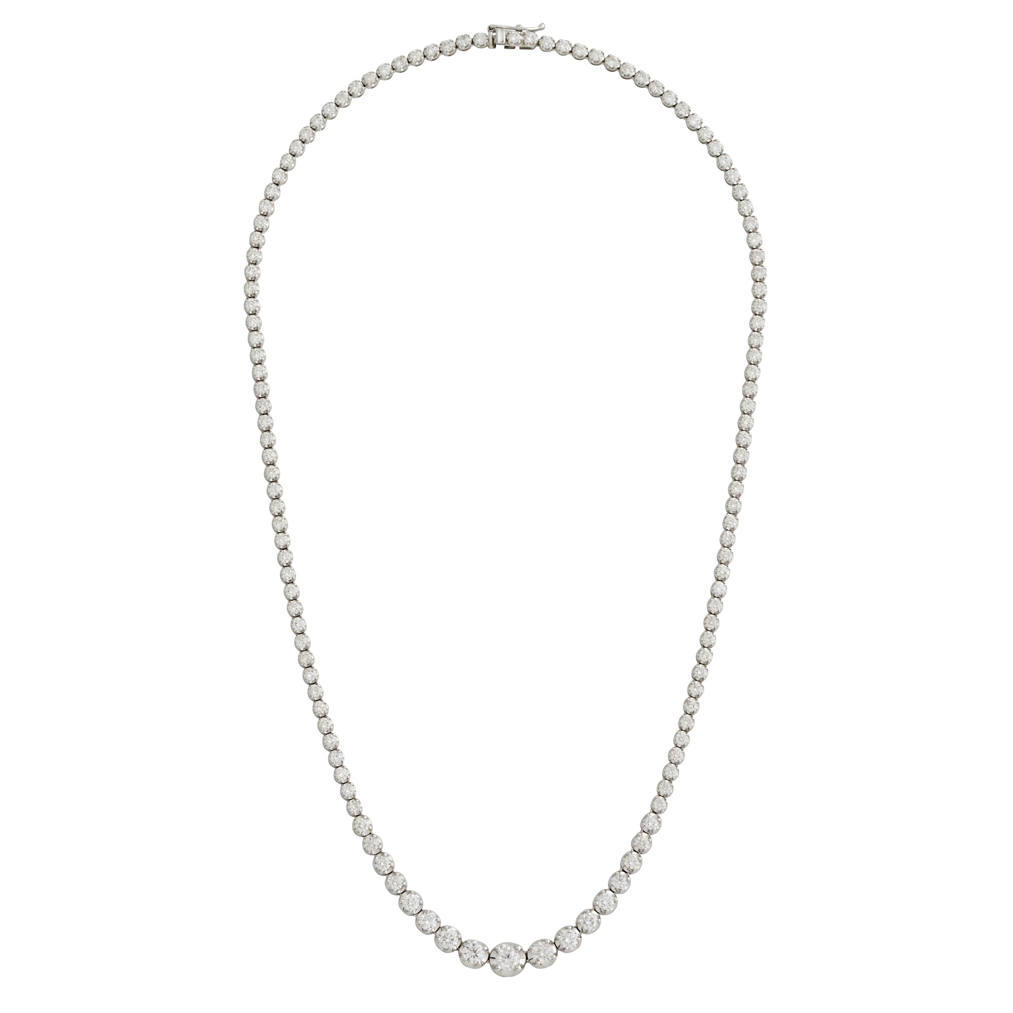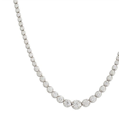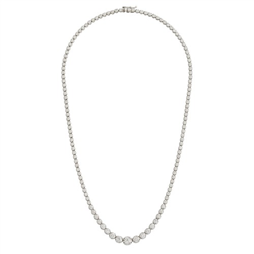 Modelled as a continuous line of one hundred and twenty-six graduated illusion claw-set round brilliant cut diamonds together weighing approximately 7.02 carats, completed by a concealed box clasp, length 400mm, gross weight approximately 15.05 grams.