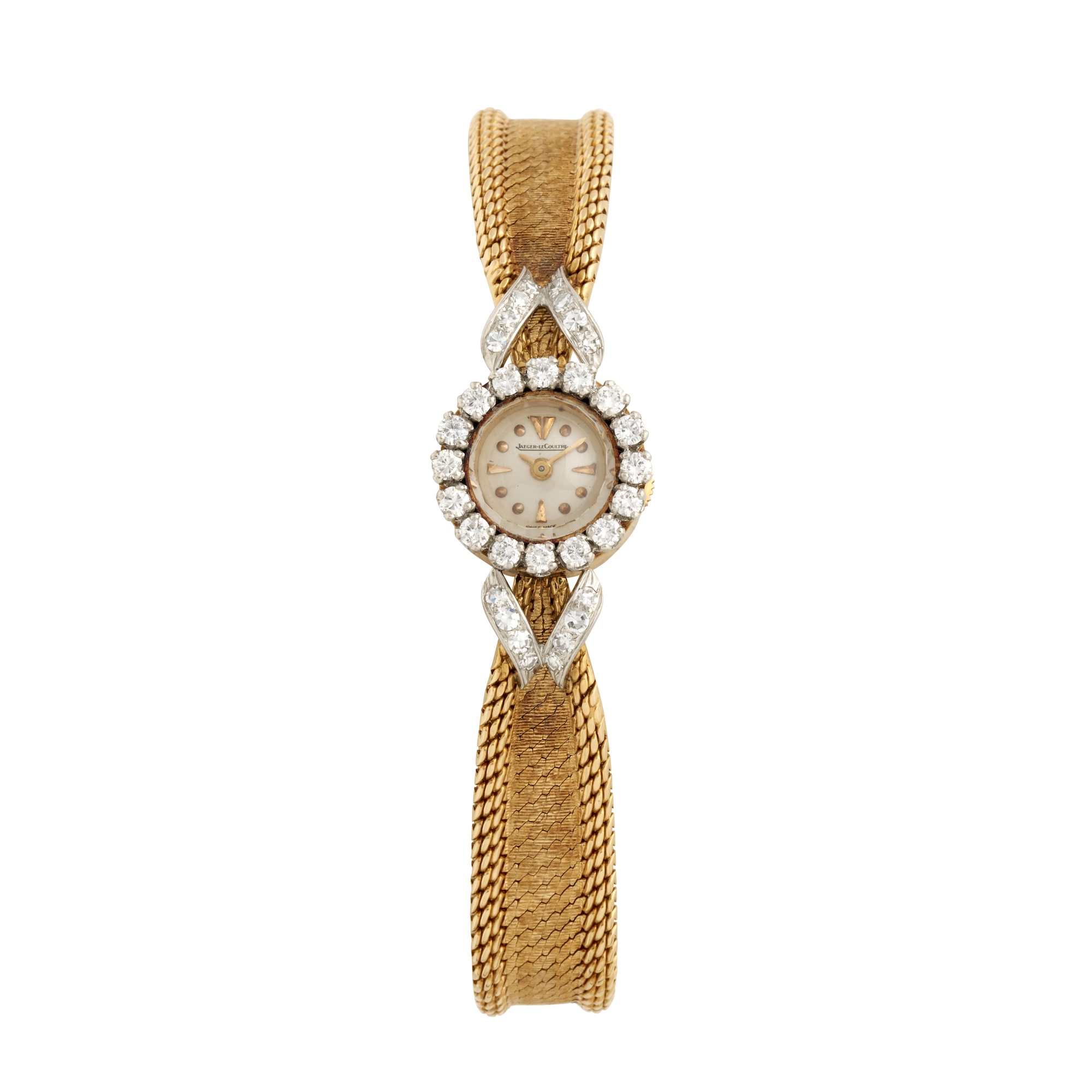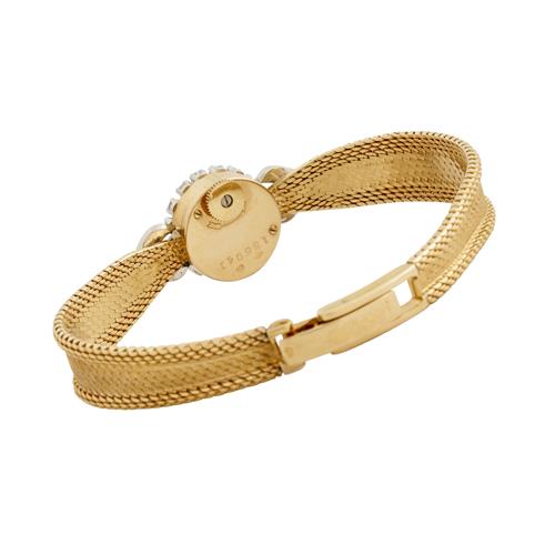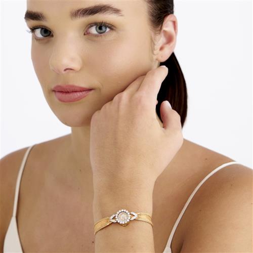 Closure: integrated 18ct gold satin finish and mesh link bracelet and locking clasp
