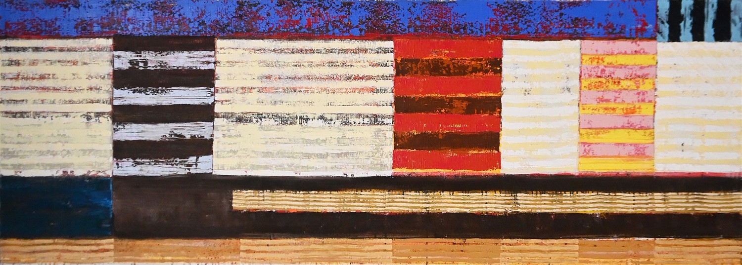 ACRYLIC ON CANVAS, SIGNED, TITLED AND DATED VERSO, 75 X 210CM