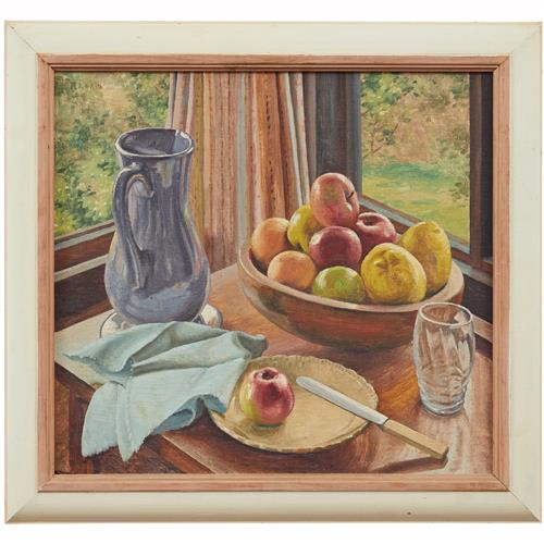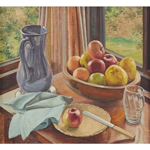 signed, titled and inscribed on label verso: H Weaver Hawkins / Mona Vale / By the Windows / 22gns.