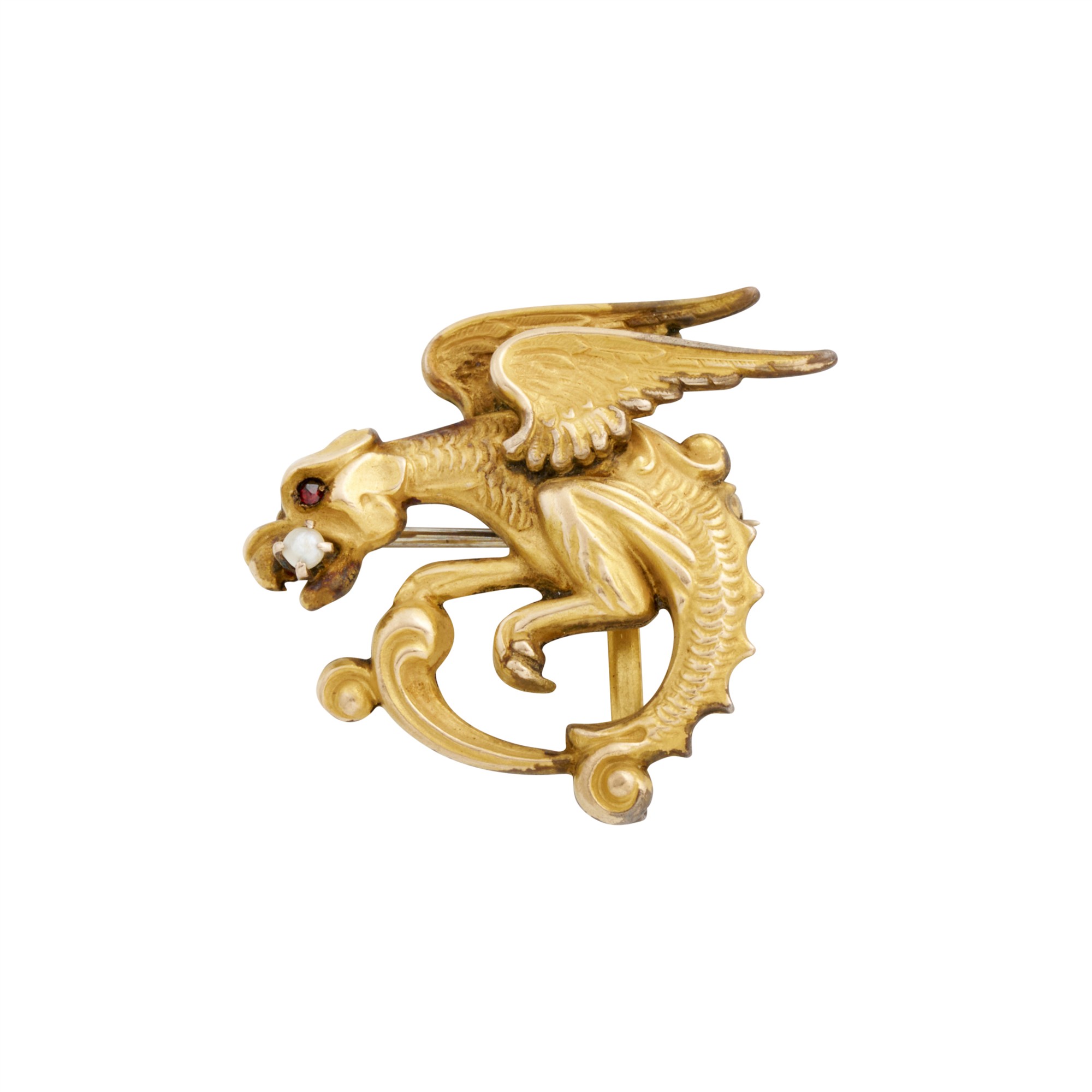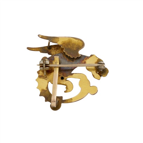 The rear of the brooch is marked with French marks, and the gold shows some signs of age.