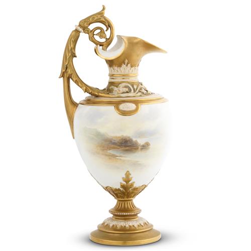 A ROYAL WORCESTER PORCELAIN EWER VASE DECORATED BY JOHN STINTON, Jnr