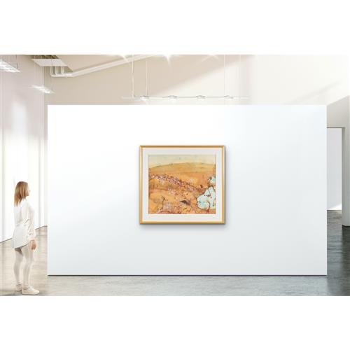 In 'Landscape with Lake Rydal', the vast ochres and golds evoke the wide-open plains surrounding Rydal in rural New South Wales, while the painterly arabesques and flecks of pigment suggest a landscape in flux, rippling with life and inscribed with memory.