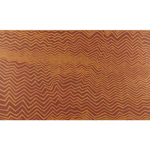 "This painting depicts designs associated with Kirritjinna, a rockhole site north of Jupiter Well in Western Australia. In mythological times a large group of Tingari Men camped at this site before travelling through Naru and Kiwiikura to Wilkinkarra (Lake Mackay). The lines represent the sandhills in the area through which they travelled. During their travels the senior men were instructing the younger ones in the group. Since events associated with the Tingari Cycle are of a secret nature no further detail was given. Generally, the Tingari are a group of mythical characters of the Dreaming who travelled over vast stretches of the country, performing rituals and creating and shaping particular sites. The Tingari Men were usually followed by Tingari Women and accompanied by novices and their travels and adventures are enshrined in a number of song cycles. These mythologies from part of the teachings to the initial youths today as well as providing explanations for contemporary customs."