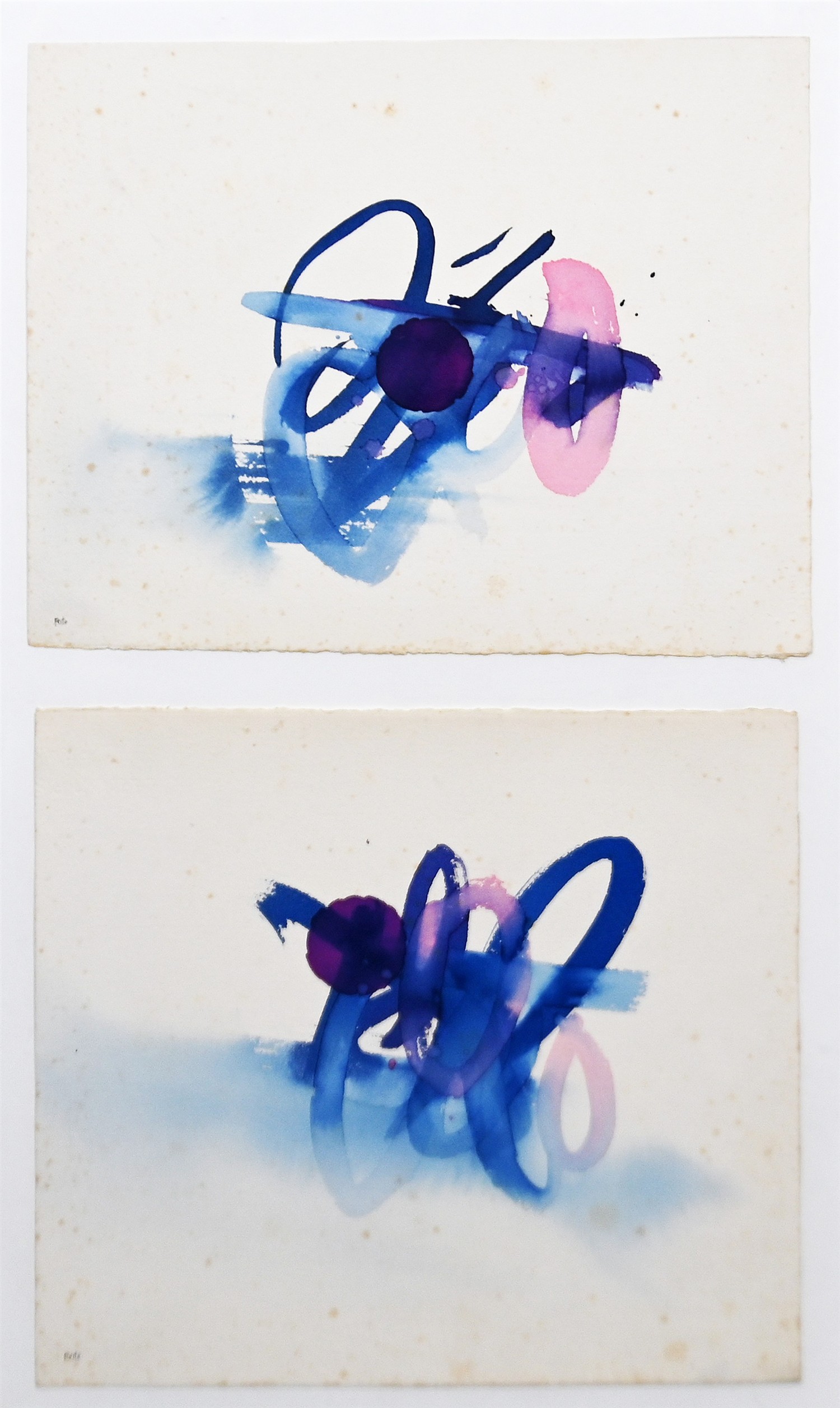 MIXED MEDIA ON PAPER, SIGNED LOWER RIGHT (EACH), 29.5 X 33CM (SHEET,EACH), 63 X 37CM (BACKING BOARD)