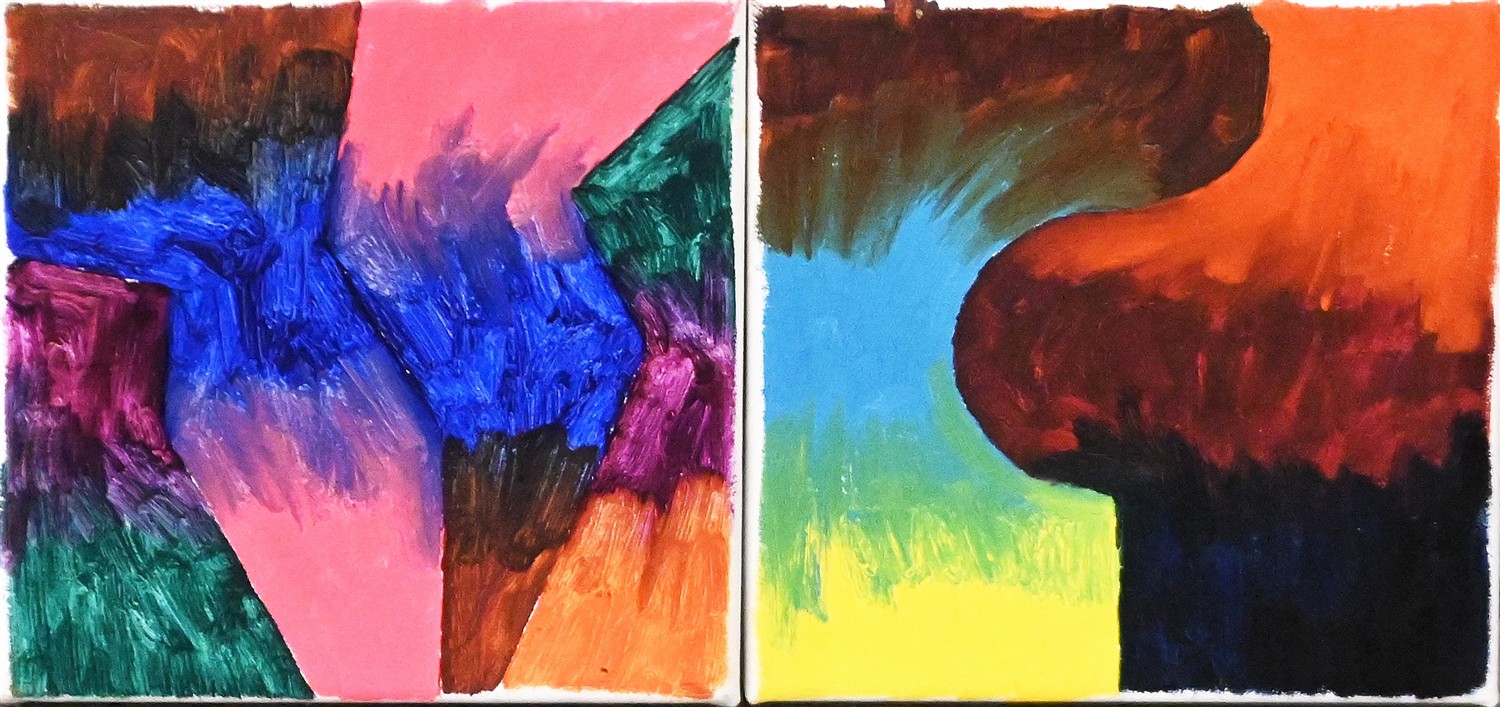 A PAIR OF WORKS, OIL ON CANVAS, SIGNED AND DATED VERSO (BOTH), 20.5 X 20.5CM (EACH)