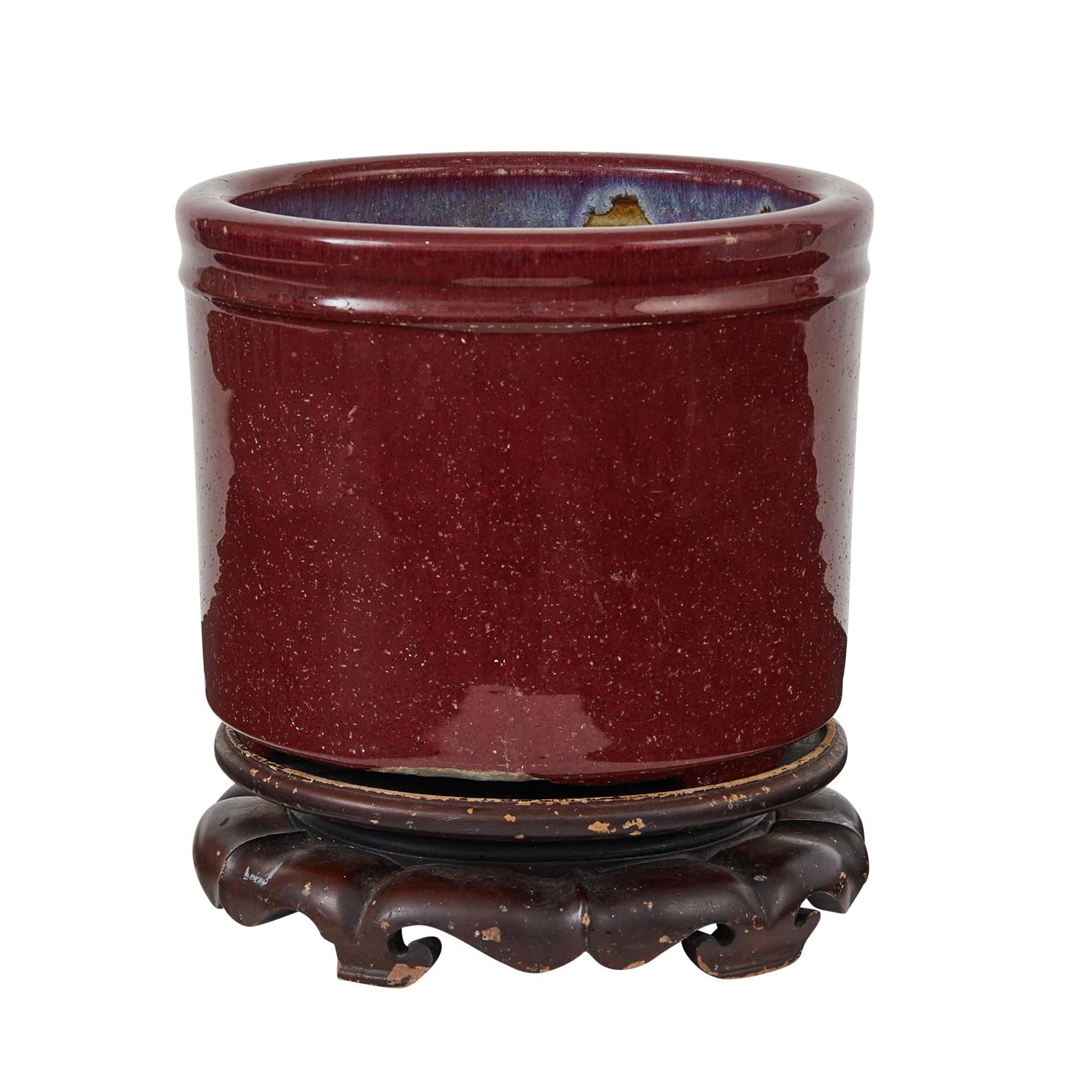 Late 19th century, cylindrical with moulded rim, wooden stand.