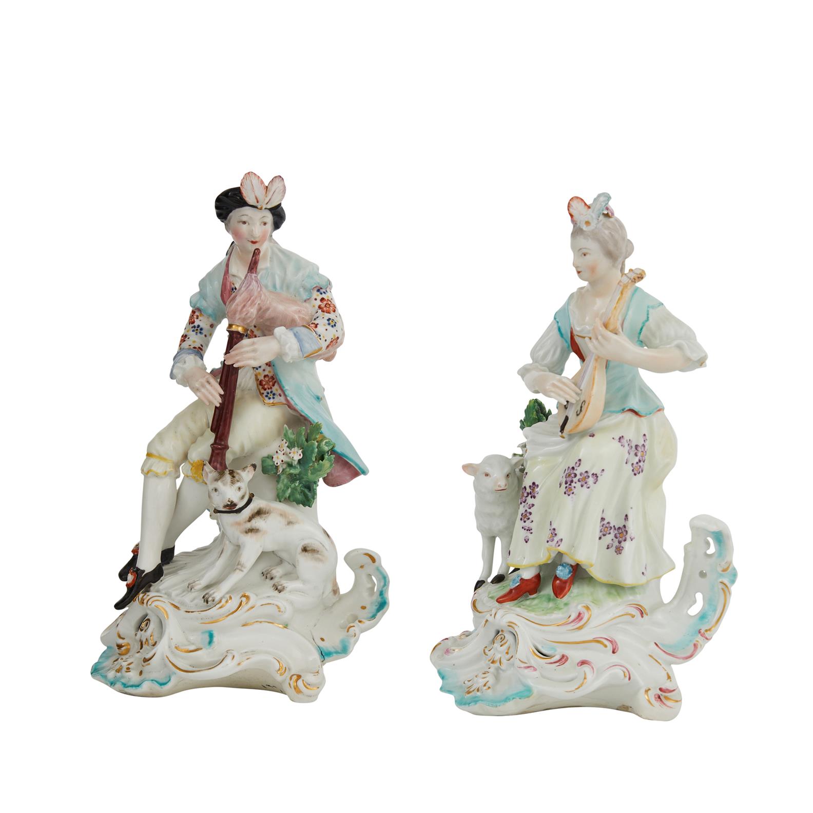 Last quarter of the 18th century, both seated, he playing a musette and she a mandolin, on rocaille bases.