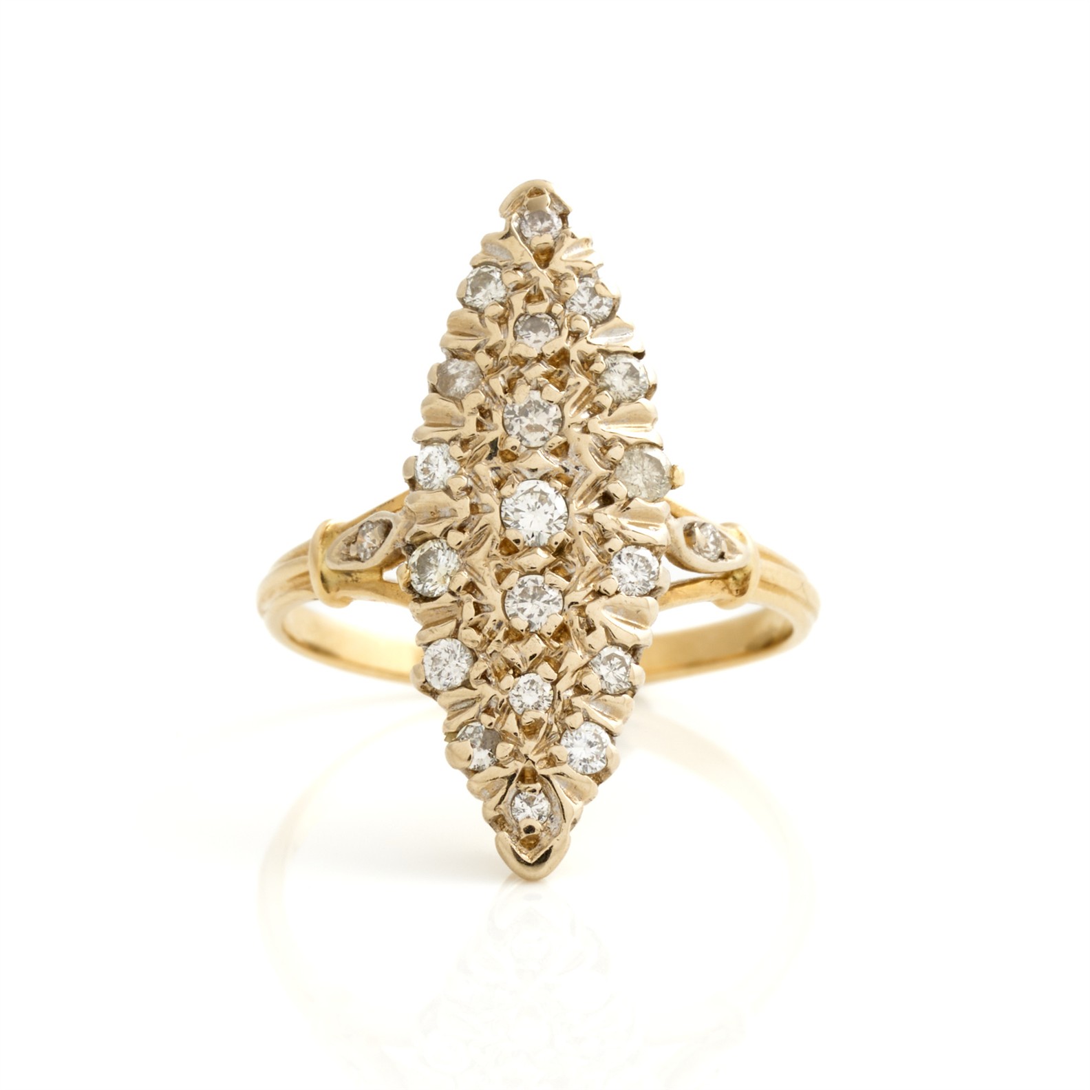 A DIAMOND SET MARQUISE SHAPED RING IN 18CT GOLD, SIZE N 1/2, 4.28GMS