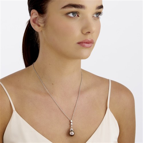 The pearl is brownish black with smooth skin and very good lustre. The skin is smooth, the pearl surface has very few markings and is in excellent condition. Some pits and marks are to be expected on an organic pearl.