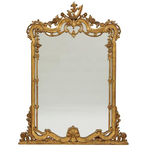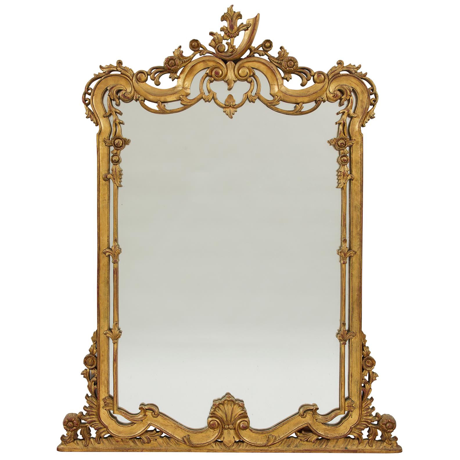 Top piece of carving reglued, gold finish throughout worn in places showing red underpaint.