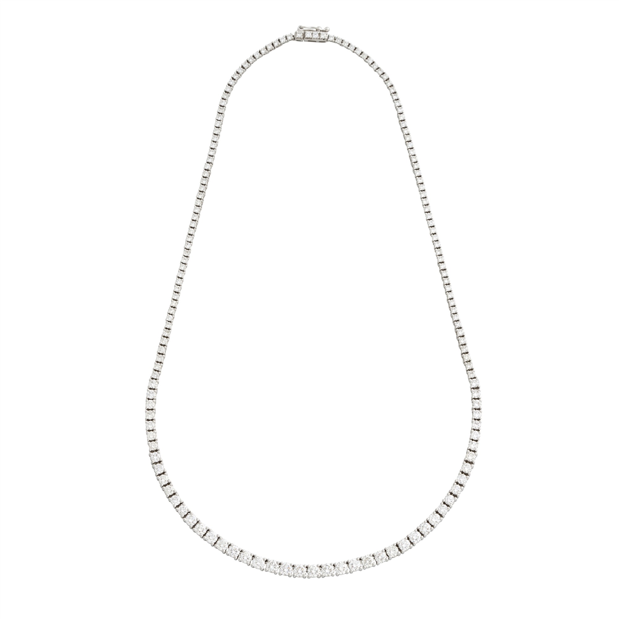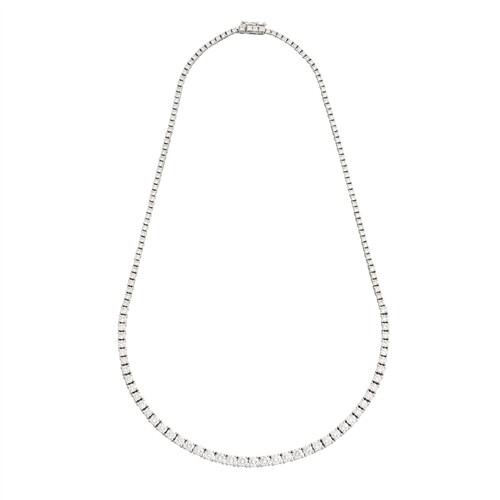 A graduated claw-set diamond necklace with round brilliant-cut diamonds, the diamonds together weighing approximately 8.48 carats, length approximately 410mm, gross weight approximately 18.0 grams.