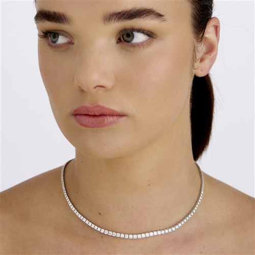 The diamonds graduate towards the centre and are smaller towards the clasp.