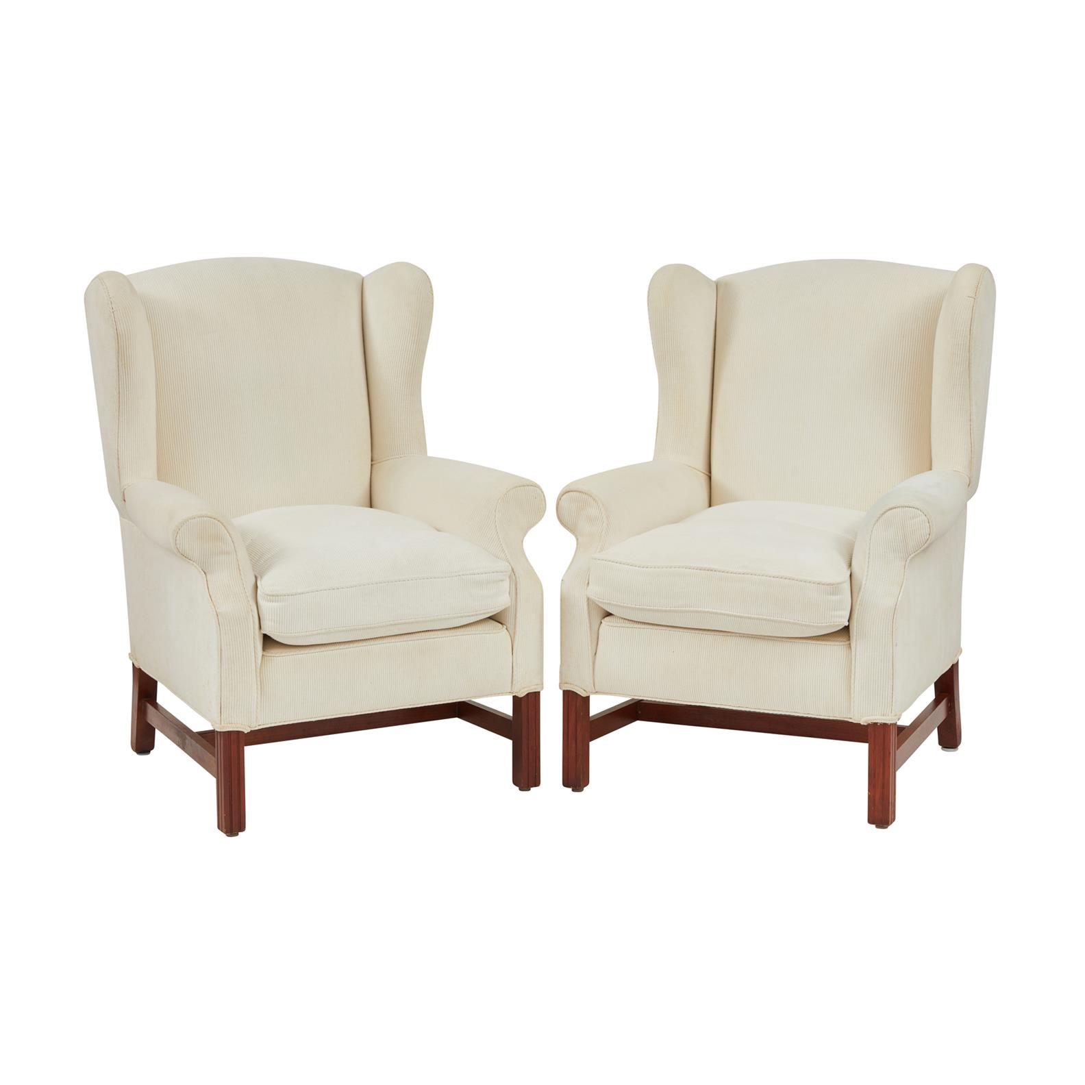 A PAIR OF GEORGIAN STYLE MAHOGANY FRAMED WING ARMCHAIRS
