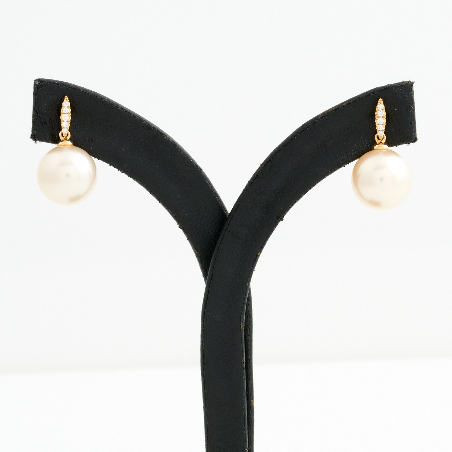 A PAIR OF SOUTH SEA PEARL AND DIAMOND EARRINGS IN 18CT GOLD, TO POST AND BUTTERFLY FITTINGS, THE PEARLS MEASURING 11MM DIAMETER