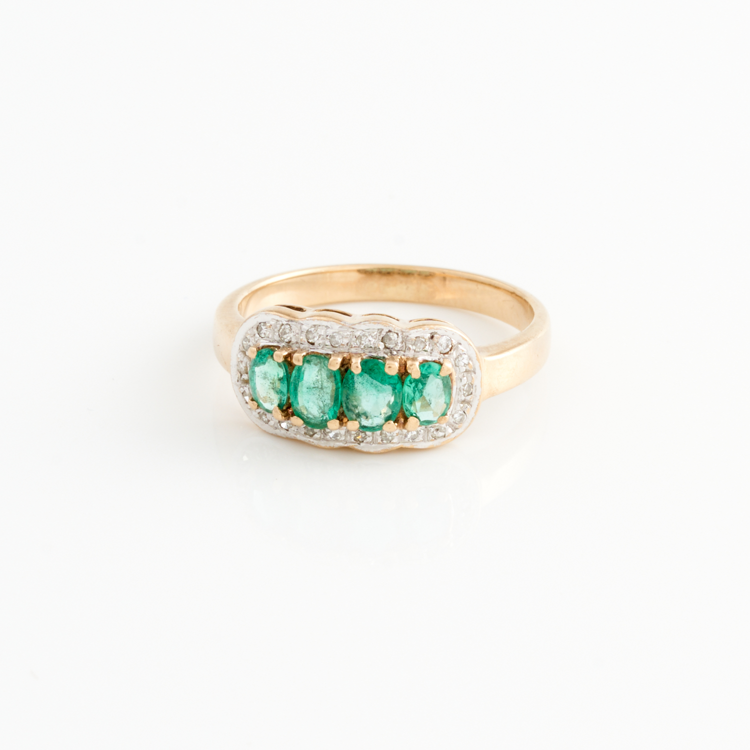 AN EMERALD AND DIAMOND RING IN 9CT GOLD, SIZE L, 2.59GMS