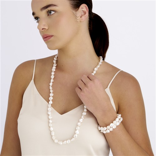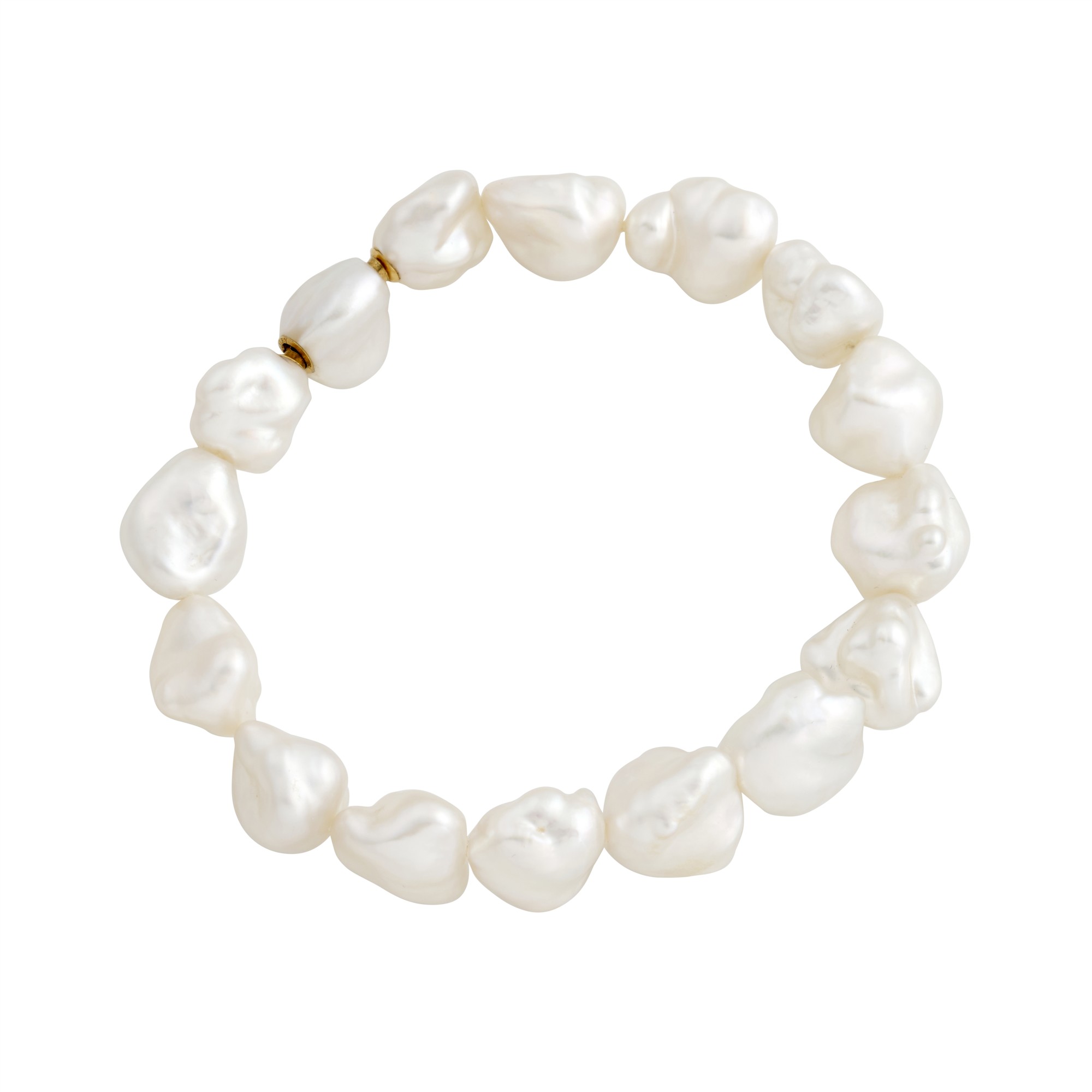 A bracelet of sixteen white south sea baroque Keshi pearls, with excellent lustre, each measuring approximately 9.0mm to an integrated south sea Keshi pearl clasp, length approximately 195mm, gross weight approximately 26.4 grams.