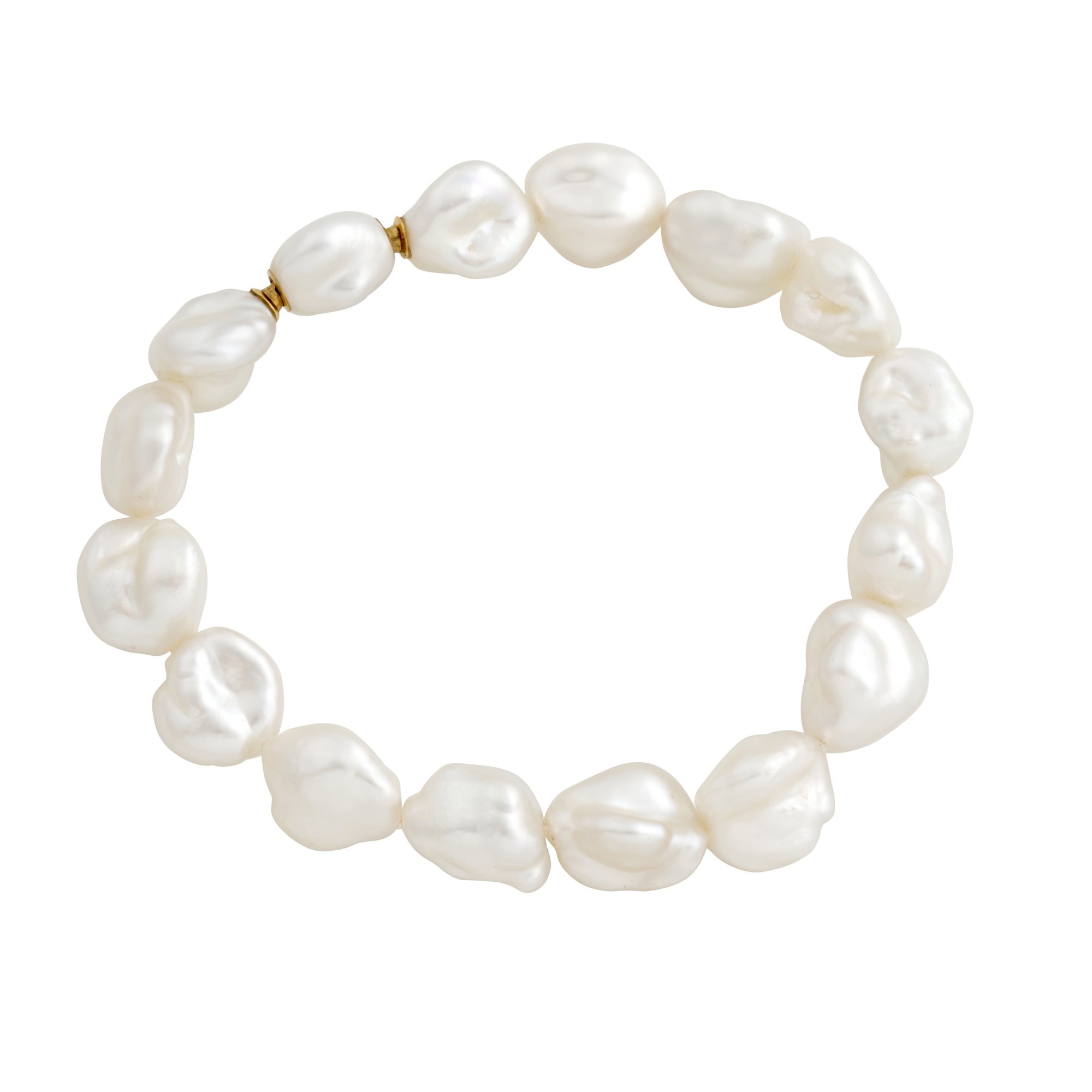 A bracelet of sixteen white south sea baroque Keshi pearls, with excellent lustre, each measuring approximately 9.0mm to an integrated south sea Keshi pearl clasp, length approximately 195mm, gross weight approximately 26.4 grams.