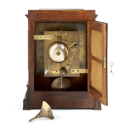 AN EARLY VICTORIAN ROSEWOOD-CASED LIBRARY CLOCK