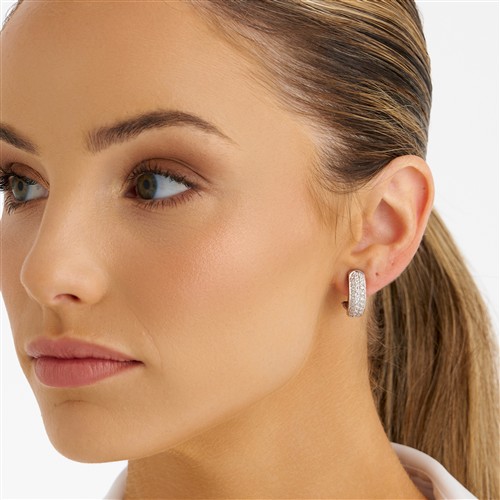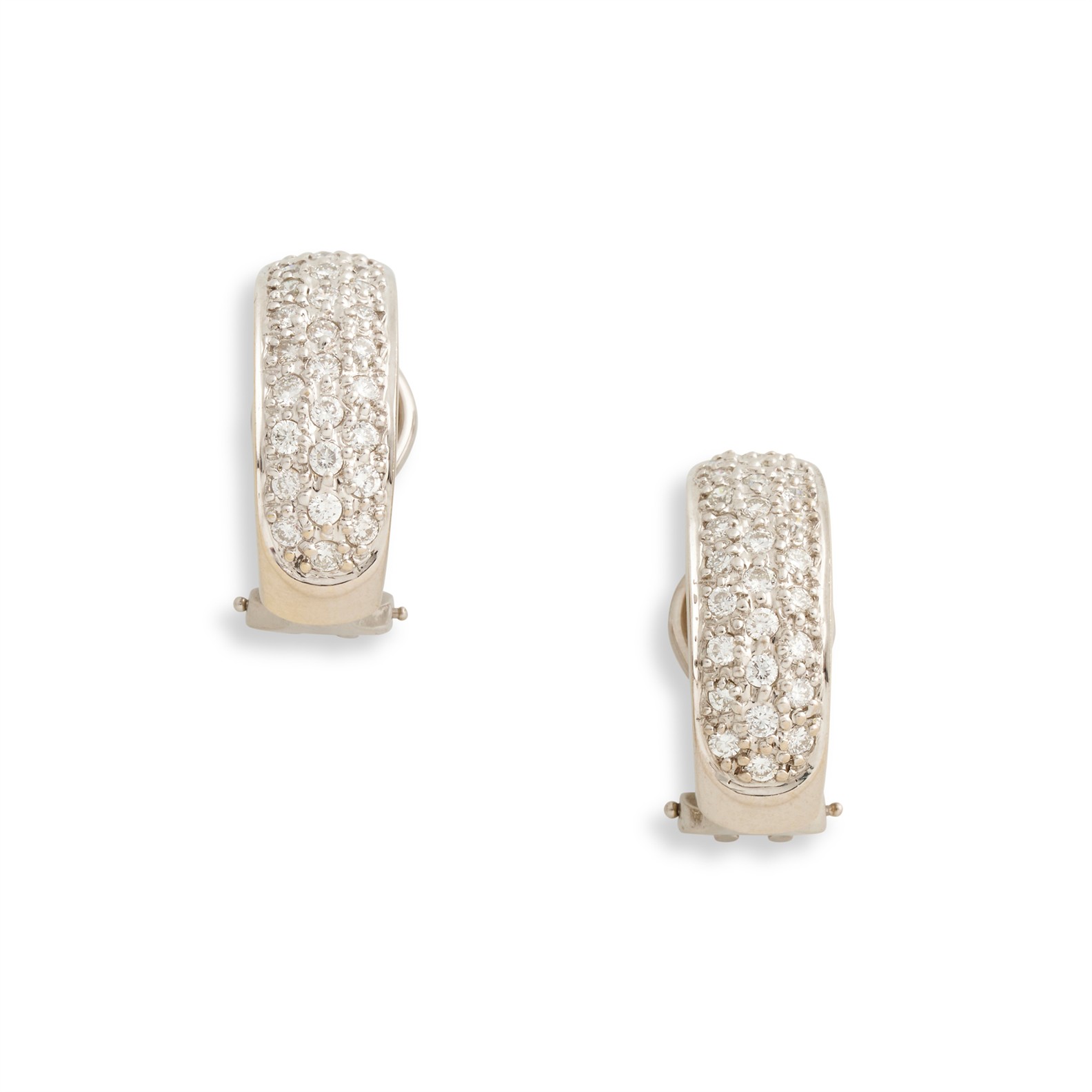 Each 6.8mm half hoop is pavé-set with brilliant-cut diamonds, the diamonds together weighing approximately 1.64 carats, mounted in 18ct white gold, length 20mm, clip fittings, gross weight approximately 7.6 grams.