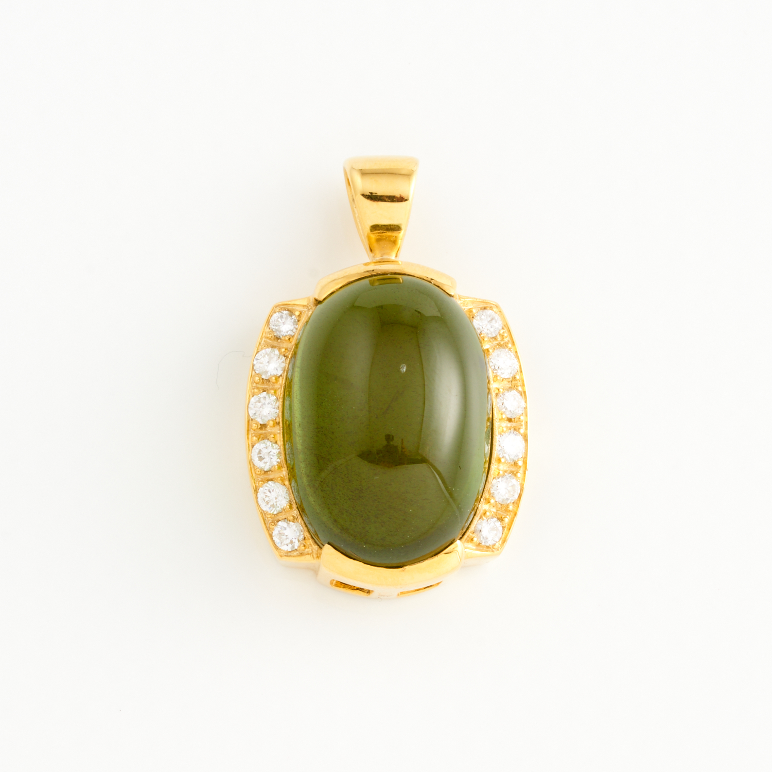 A STAR PERIDOT AND DIAMOND PENDANT IN 12CT GOLD, 20 X 30MM, TOTAL WEIGHT 15.20GMS, ACCOMPANIED BY A GEMSTONE CERTIFICATE