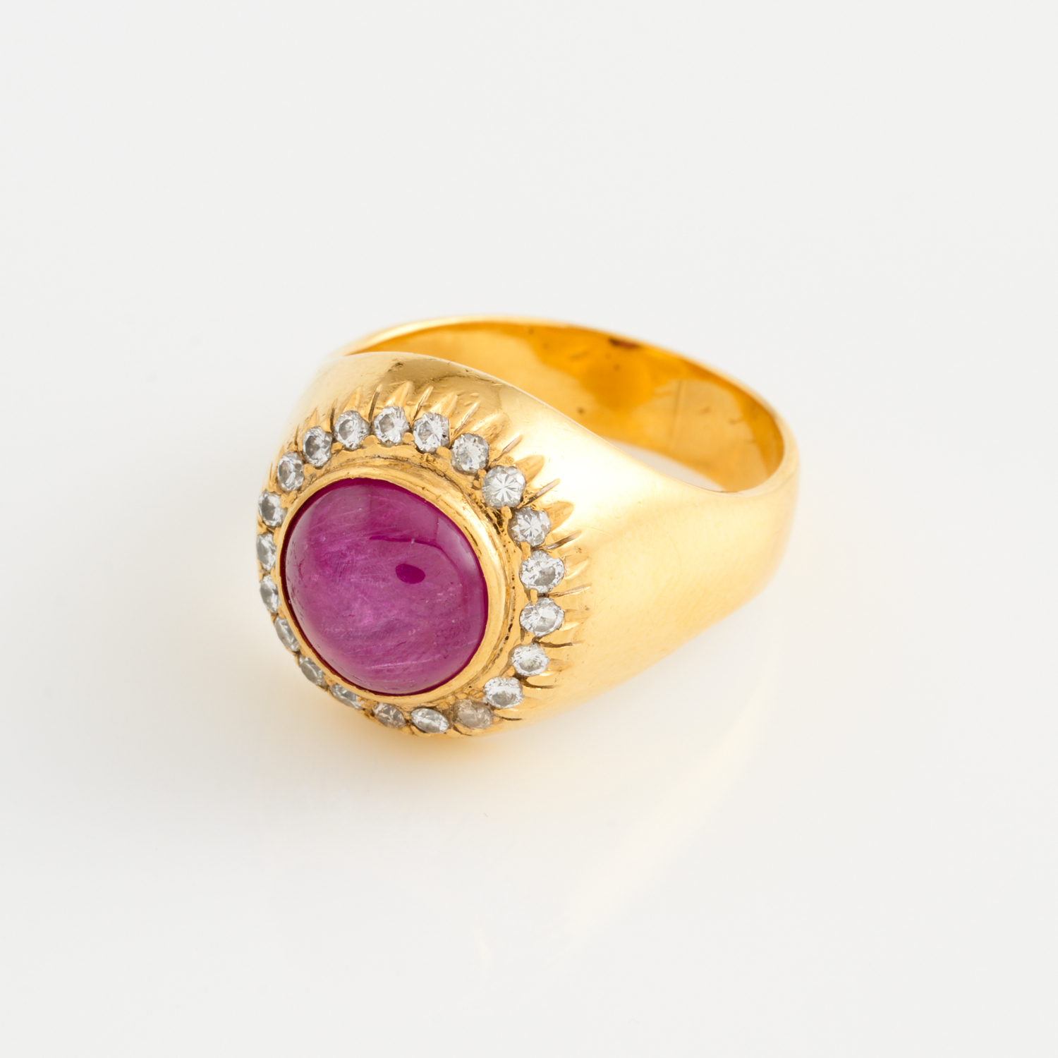 A STAR SAPPHIRE AND DIAMOND RING IN 18CT GOLD, SIZE T, TOTAL WEIGHT 13.50GMS