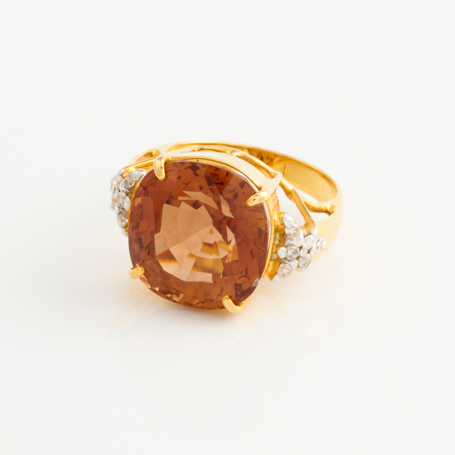 A TOPAZ AND DIAMOND RING IN 16CT GOLD, SIZE L, TOTAL WEIGHT 7.4GMS