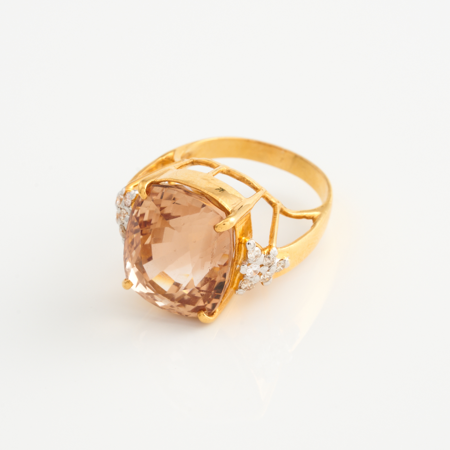 A TOPAZ AND DIAMOND RING IN 18CT GOLD, SIZE L, TOTAL WEIGHT 8.3 GMS