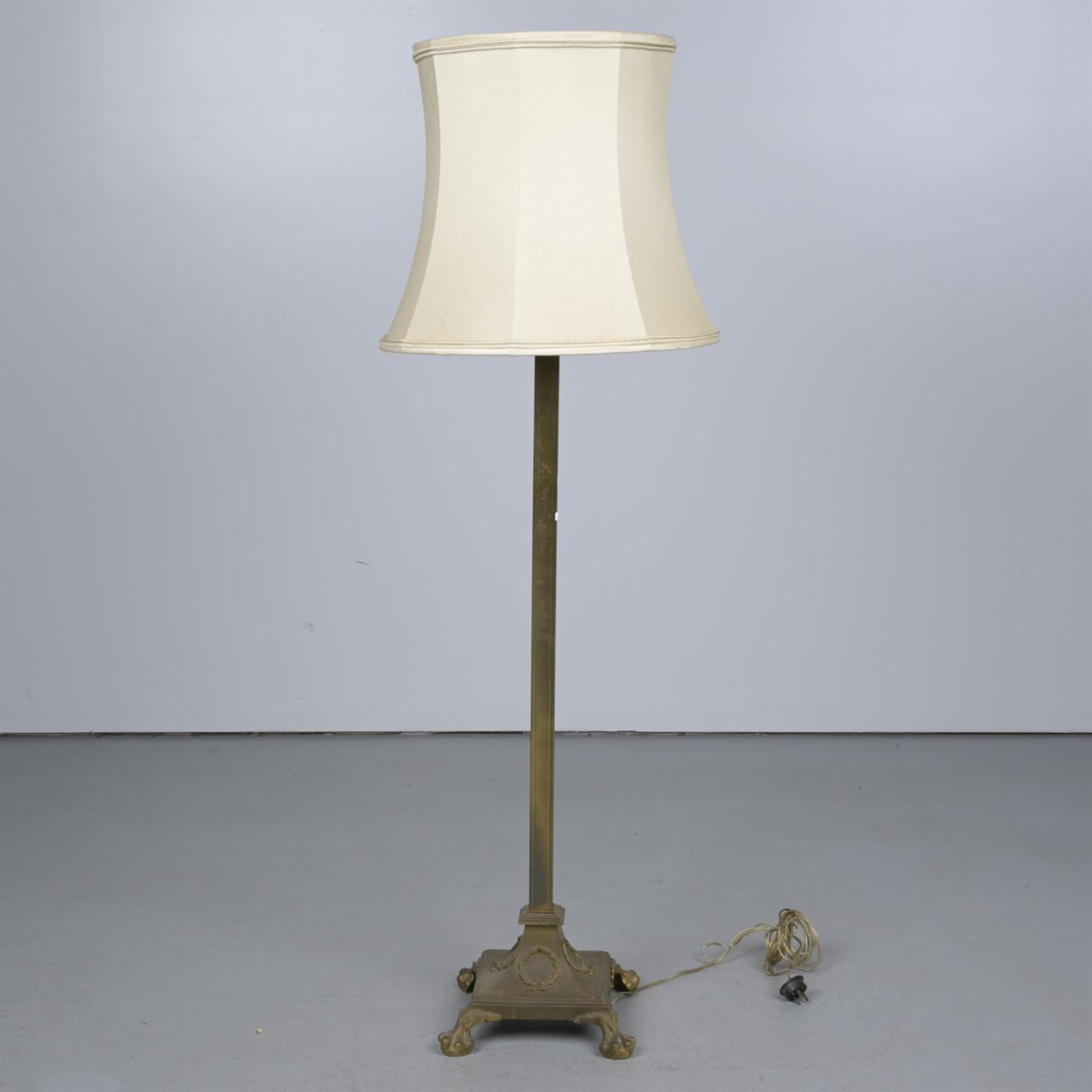 A BRASS STANDARD LAMP IN ANTIQUE MANNER (A/F) (155CM H X 52CM DIA)