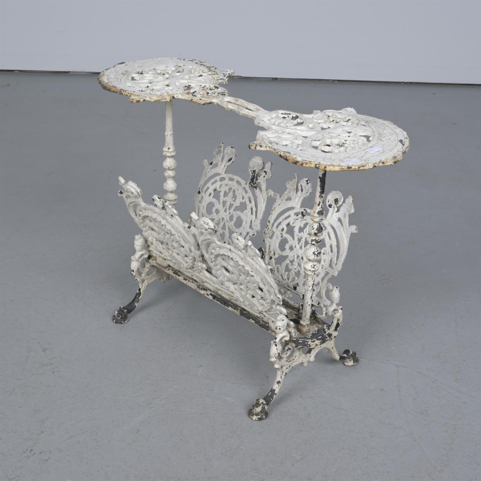A PAINTED CAST IRON MAGAZINE RACK / SIDE TABLE (A/F) (46CM H X 62CM W X 22CM D)