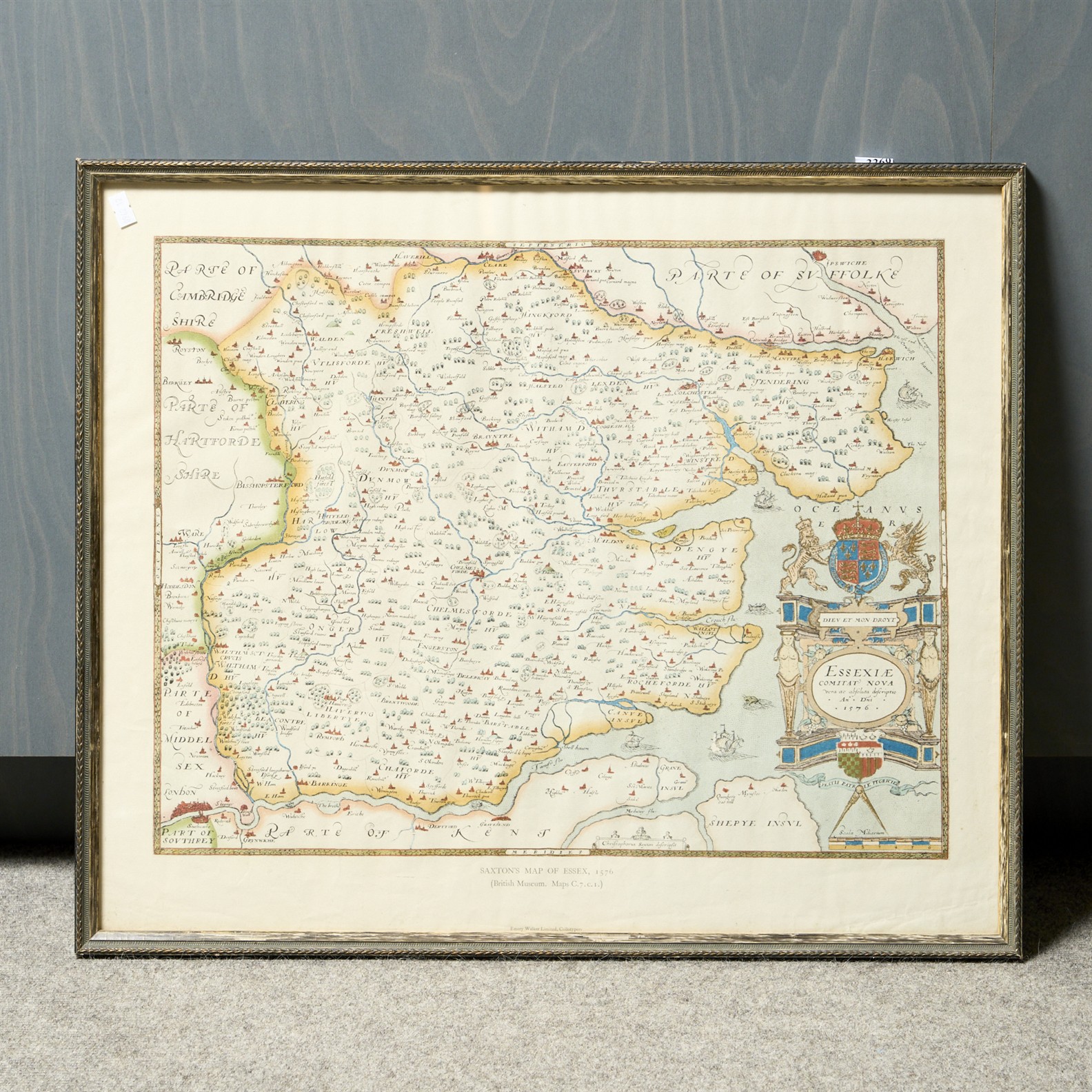 A FRAMED PRINT 'SAXTONS MAP OF ESSEX' 53 X 63CM