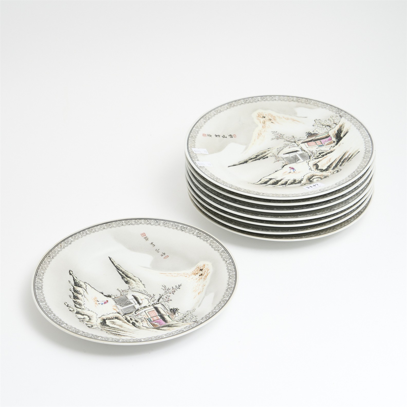 A SET OF EIGHT CHINESE PORCELAIN WALL PLATES, MARKED QIAN LONG REPUBLIC DIA.25CM