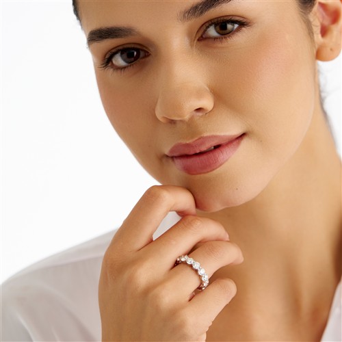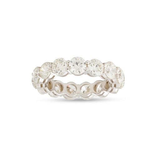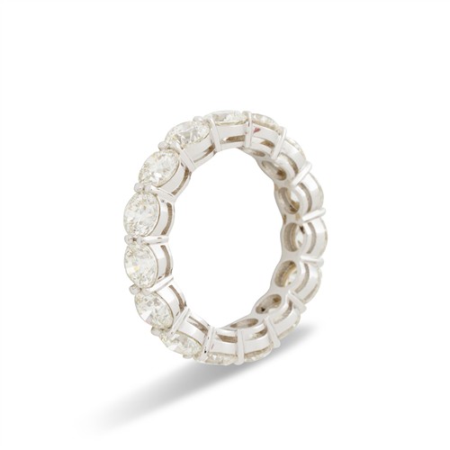 Designed as a continuous row of 15 claw-set round brilliant-cut diamonds together weighing 5.34 carats, mounted in 18ct white gold, size M1/2, gross weight approximately 4.1 grams.